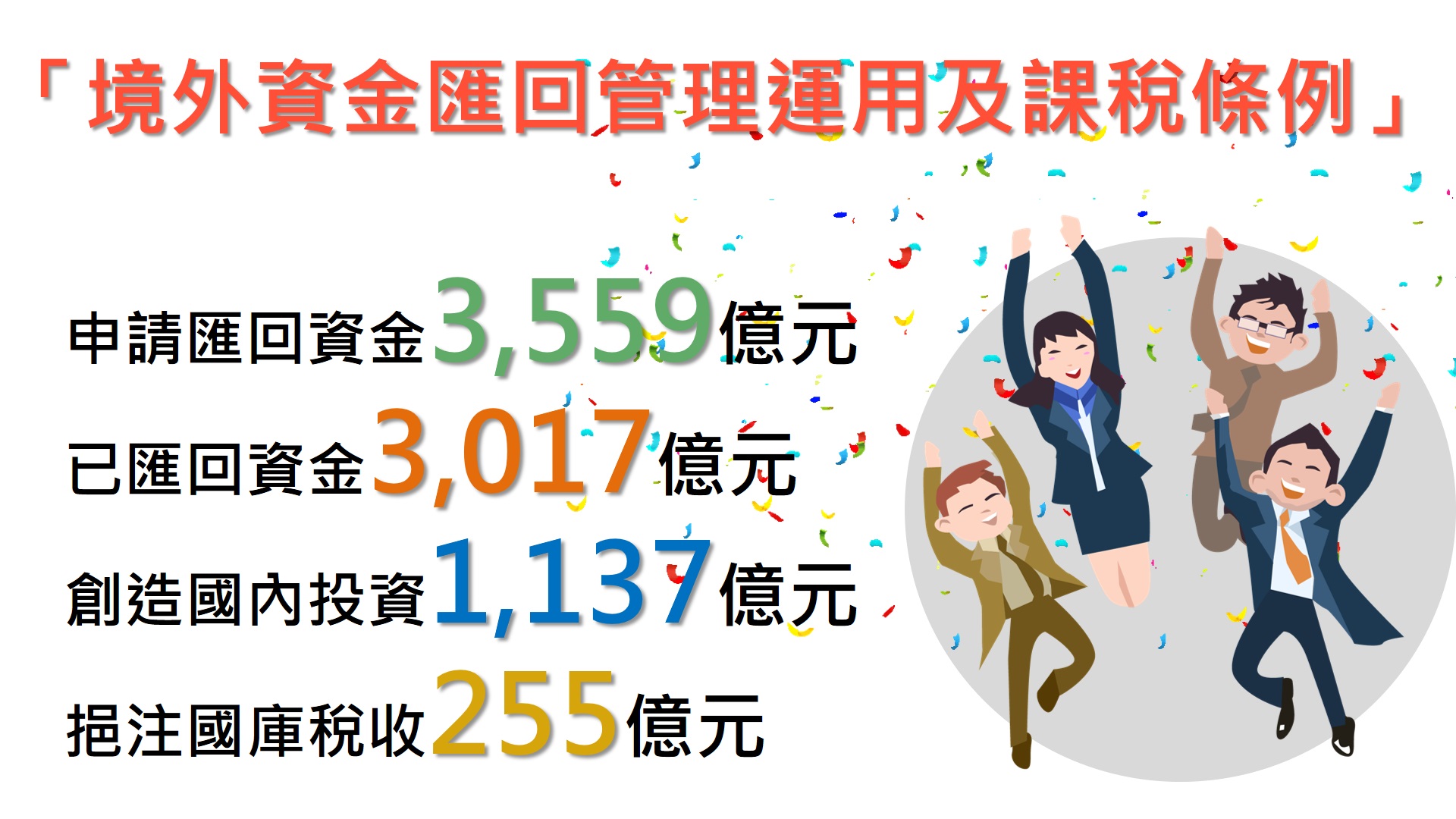 財政部就境外資金匯回管理運用及課稅條例(下稱資金專法)實施成果提出報告,重點說明如下: