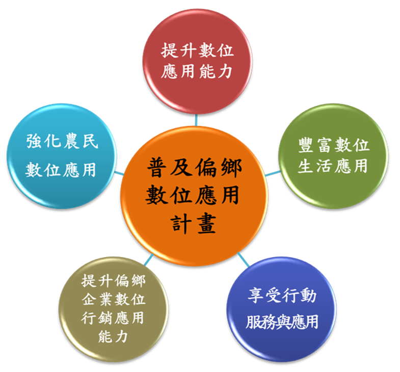 教育部配合「數位國家·創新經濟發展方案」之主軸三「網路社會數位政府」行動計畫,考量數位人權及保障弱勢族群公平參與的機會,協調部會資源整合推動「普及偏鄉數位應用計畫」,與國家發展委員會、原住民族委員會、經濟部、內政部、衛生福利部、勞動部、行政院農業委員會合作,推動原住民、新住民、(中)低收入、身心障礙者、農民及婦女數位發展程度較需關懷的多元族群數位應用。