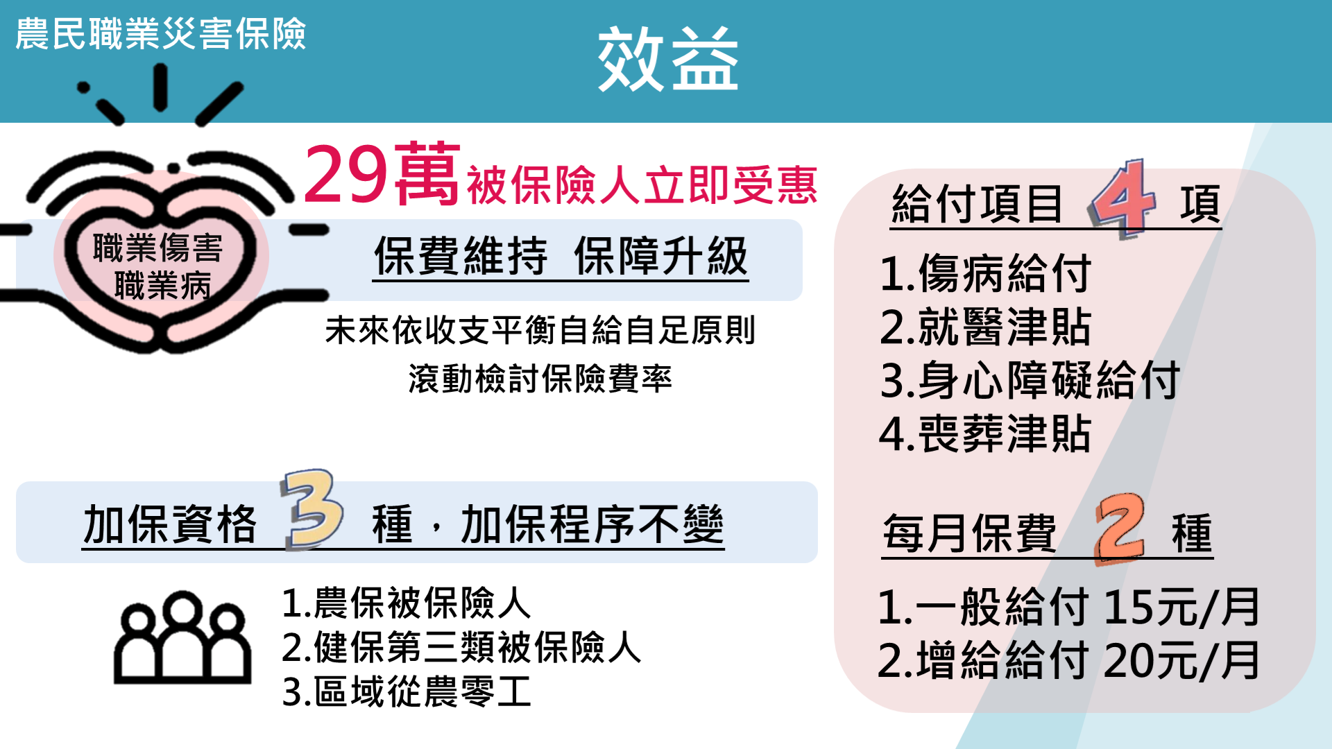 建立農民職業安全意識 保險費暫時不變 保障升級