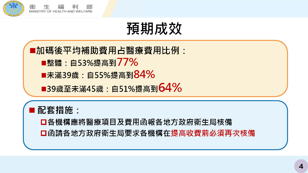 二、為持續支持不孕夫妻生育並鼓勵儘早使用補助,自114年11月1日起將再加碼補助金額,推出「不孕症試管嬰兒補助3.0」方案,重點如下: