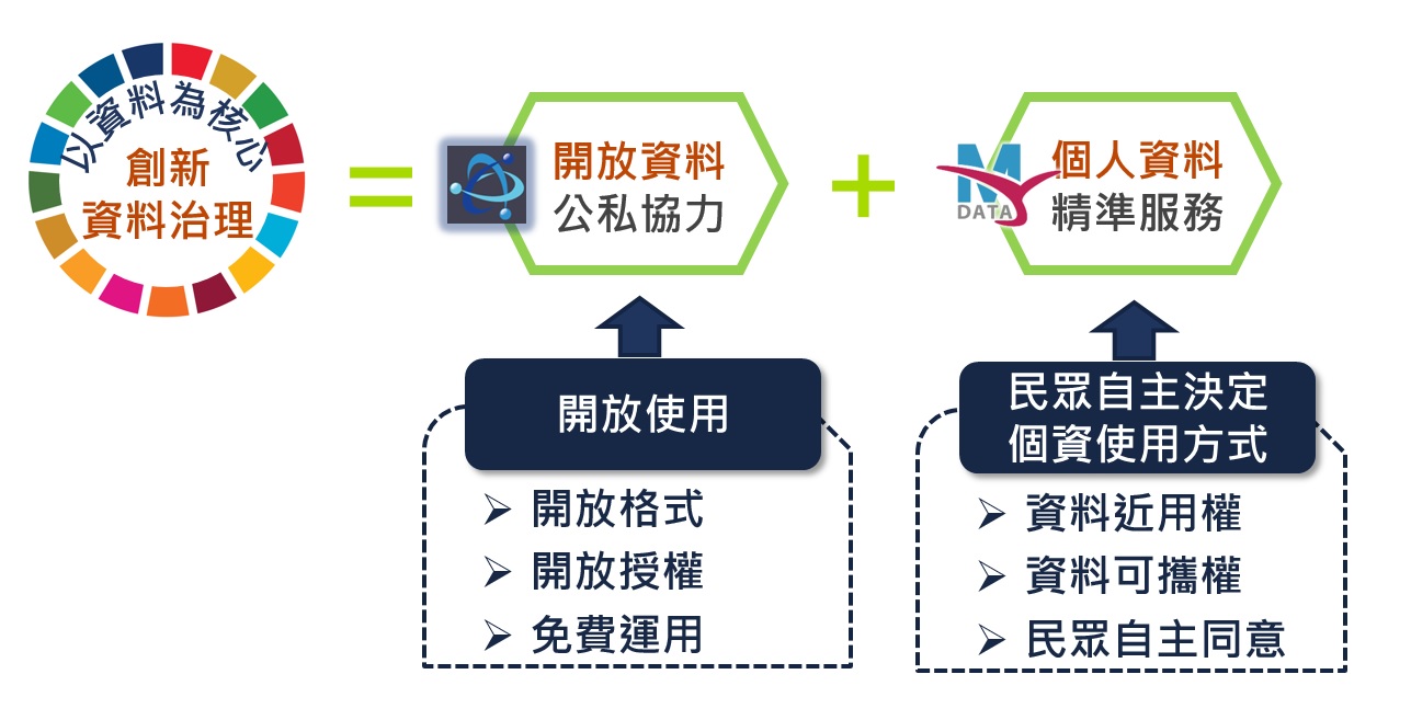 數位時代,資料具有高度的戰略價值,智慧政府資料治理以推動政府開放資料(Open Data)與個人資料自主運用(My Data)為兩大主軸,建立公私協力治理模式,完備資料經濟生態系,是加速國家數位轉型、推動智慧政府的重要工作。