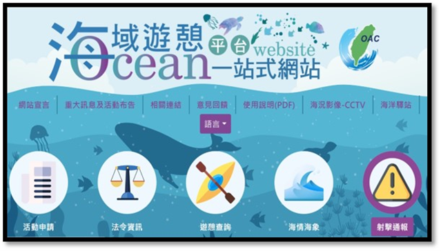 此外,考量從事海域遊憩活動有其風險,已建立海洋遊憩風險資訊平台(GO OCEAN),提供各類海域遊憩活動能力分級建議,並建立海域遊憩專屬保險機制,使民眾培養責任自主觀念,鼓勵國人積極參與海洋活動,讓國人勇於上山下海,邁開腳步走向全世界。