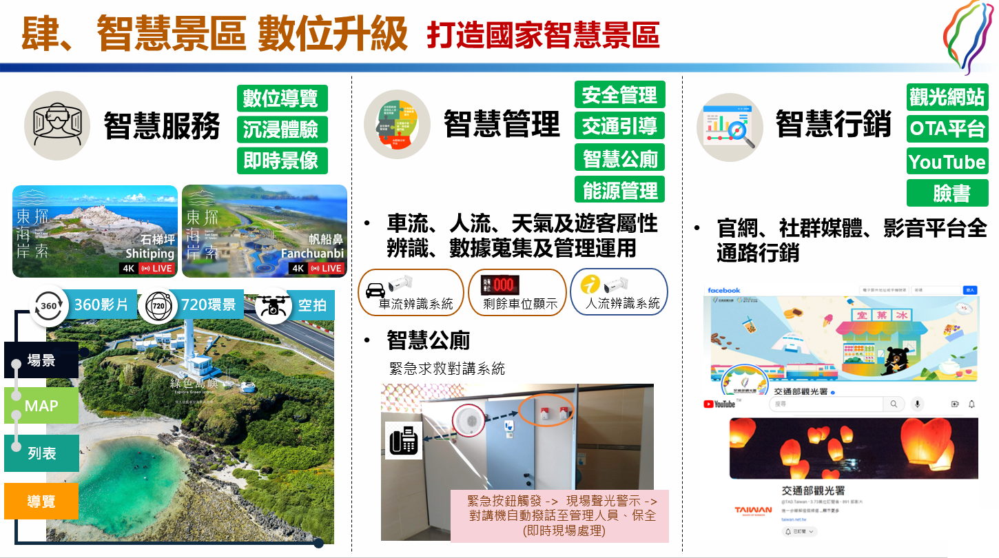 結合科技與創新,打造結合智慧管理、智慧服務及智慧行銷之「國家智慧景區」。