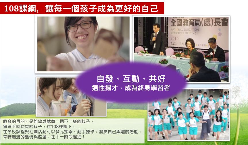 十二年國民基本教育課程綱要(以下簡稱108課綱)於108學年度正式上路,首次將國小至高中職長達12年的國教課程整併規劃。103年發布總綱後,即全面展開前置工作與配套研擬,投入大量人力物力,相關經費已達450.7億元,為108課綱實施奠定良好基礎。後續由教育部、地方政府及各級學校強化合作,引領每一位孩子深化核心素養,以達成適性揚才目標。