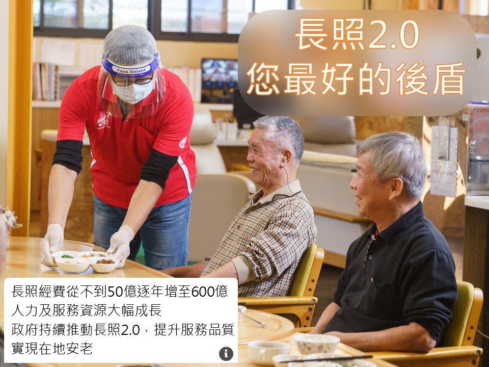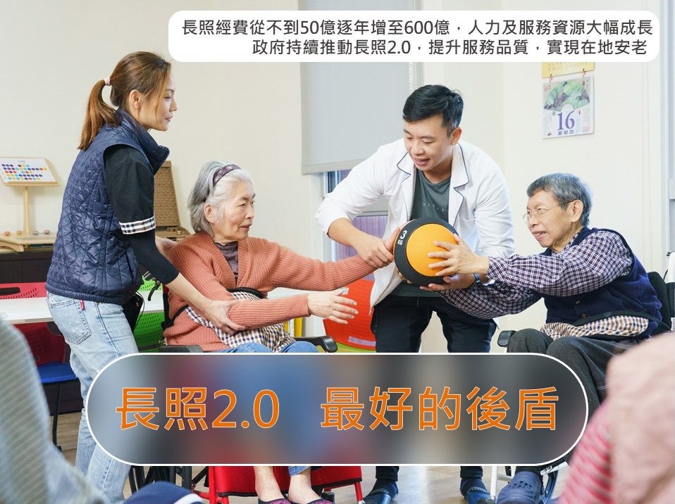 行政院將持續推動長照2.0,精進各項長照服務資源,並積極透過公部門與民間單位共同合作,強化失能者權益保障及提升長照服務品質。