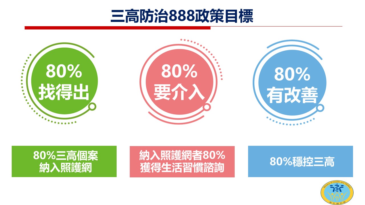 二、早期發現,及早介入,各部會齊努力善用健檢資源:預防三高除了注意飲食、運動、菸酒之危險因子之外,並應早期發現,及早介入。民眾可運用政府提供的免費健康檢查(如勞工健檢、公教健檢、成人預防保健服務等),發現有三高問題時,透過採行健康行為,可以延後三高慢性病的發生。以成人預防保健服務為例,自114年1月1日起,新增30至39歲民眾每5年可接受一次成健服務,預計320萬人受惠。