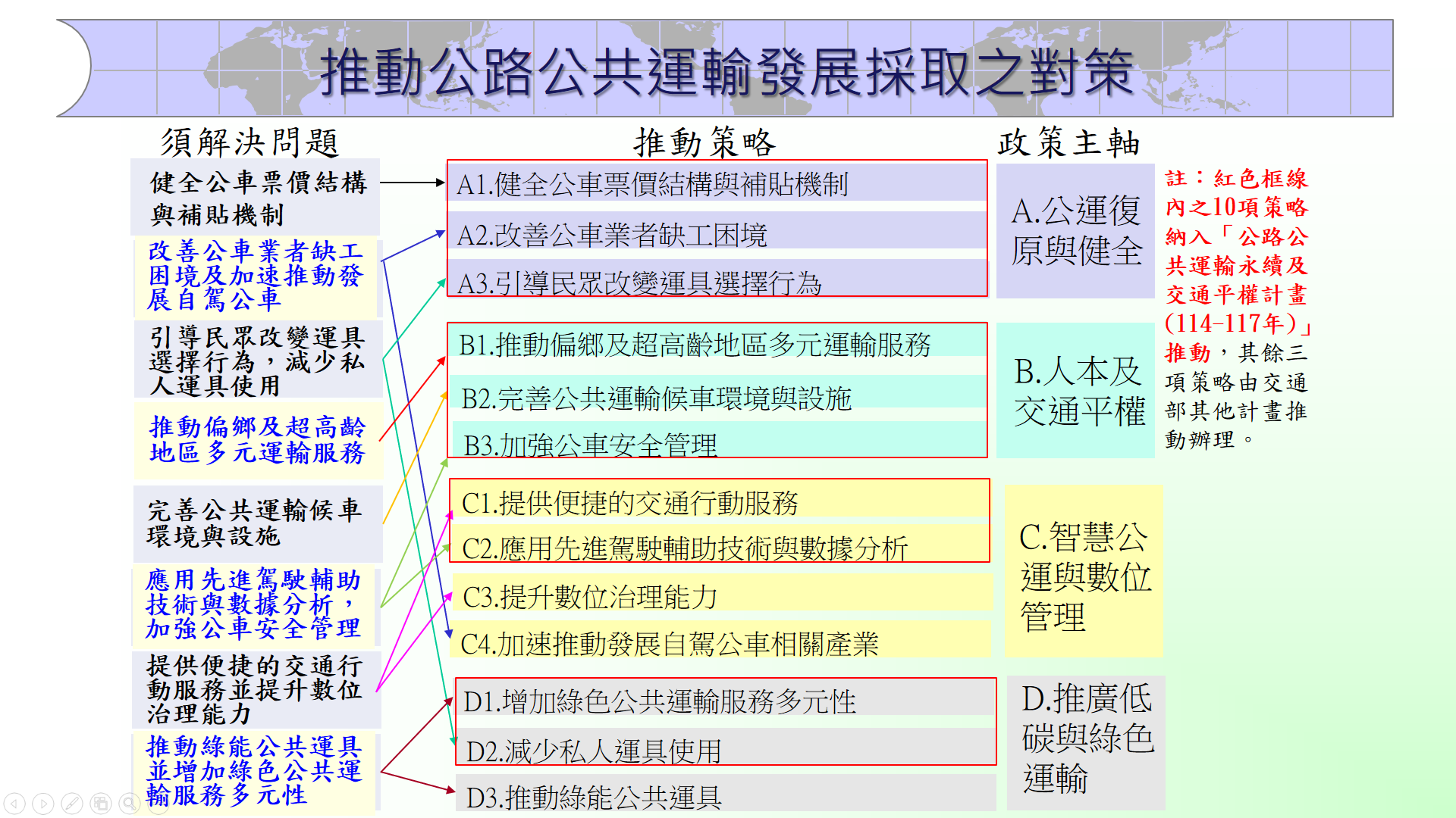 1.滾動檢討車站發展、車隊管理、運輸服務等相關法規制度