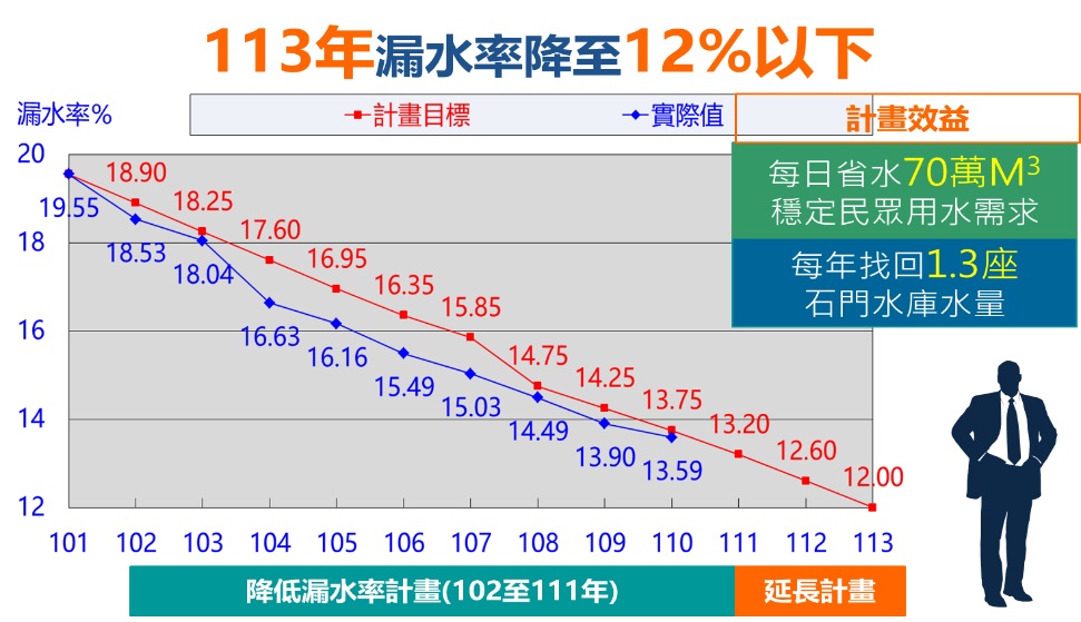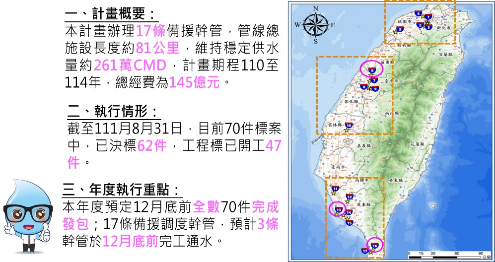 除基隆地區改善工作需緊鑼密鼓推動外,台水公司另在全台推動多項重點工作,如全台17條備援幹管與降低漏水率計畫等,均希望提供民眾更高品質且穩定供應的自來水,讓民眾用水無虞,安心用水。
