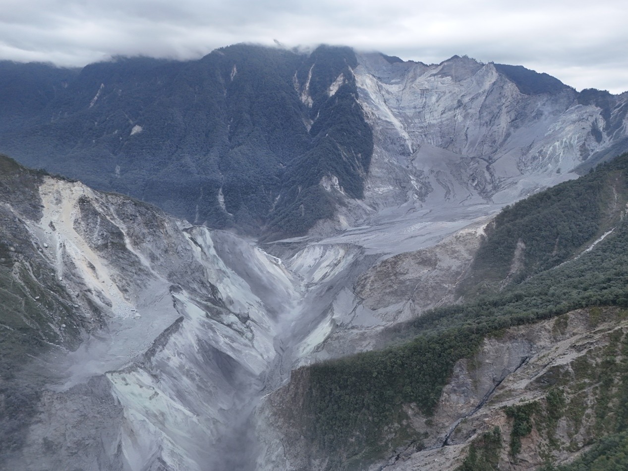 因應花蓮縣馬太鞍溪堰塞湖溢流潰決後對下游持續構成威脅,農業部林業保育署今(9)日上午以無人機觀測,確認壩體與水流狀況穩定,湖水穩定由溢流口排出。湖區面積12.6公頃,蓄水量約585萬噸,潰決後水位下降119公尺,目前蓄水量約為原本的6.4%,近一週變化不大,溢流口下刷速率亦趨緩。