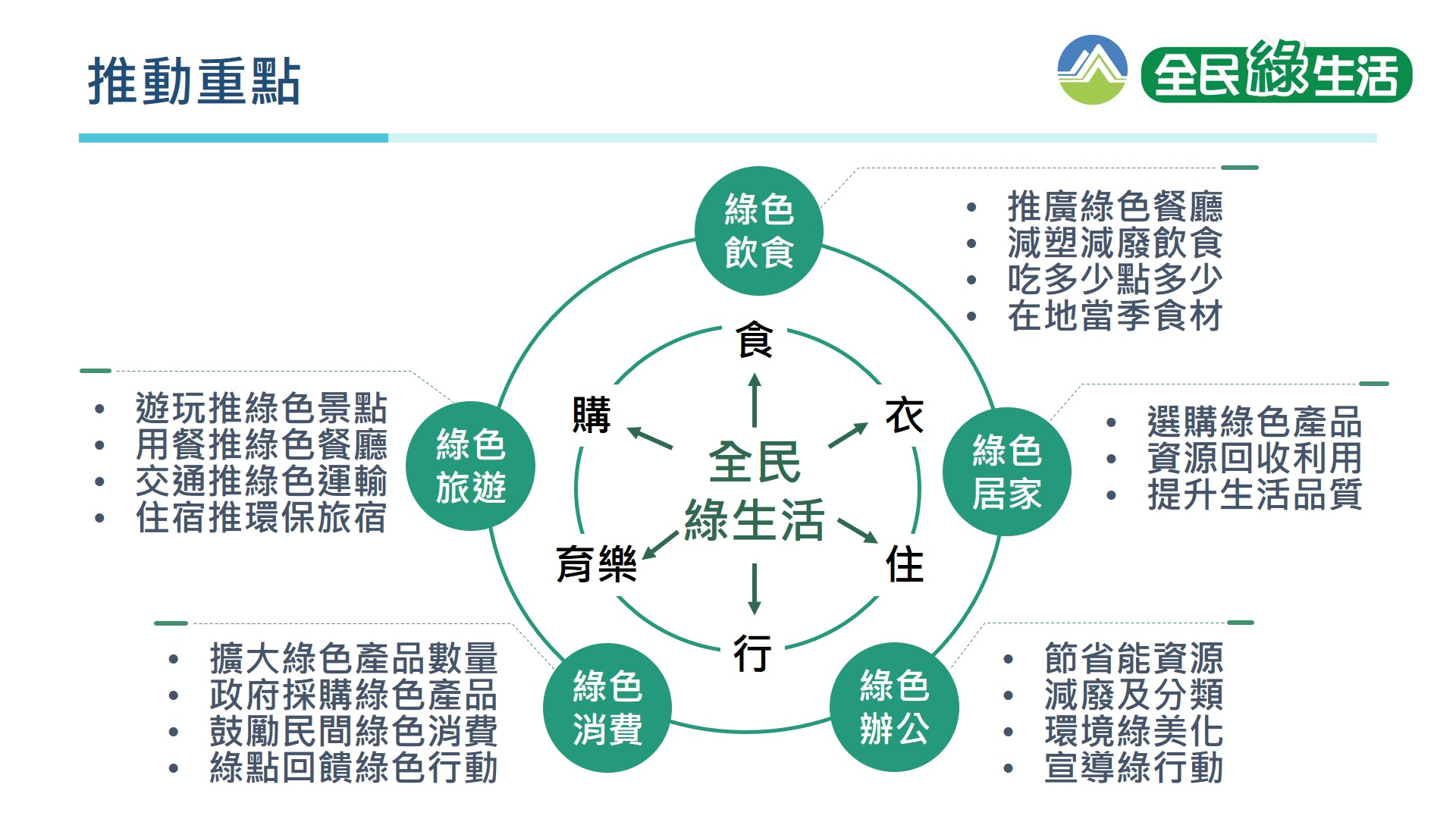 全民綠生活重要推動策略如下: