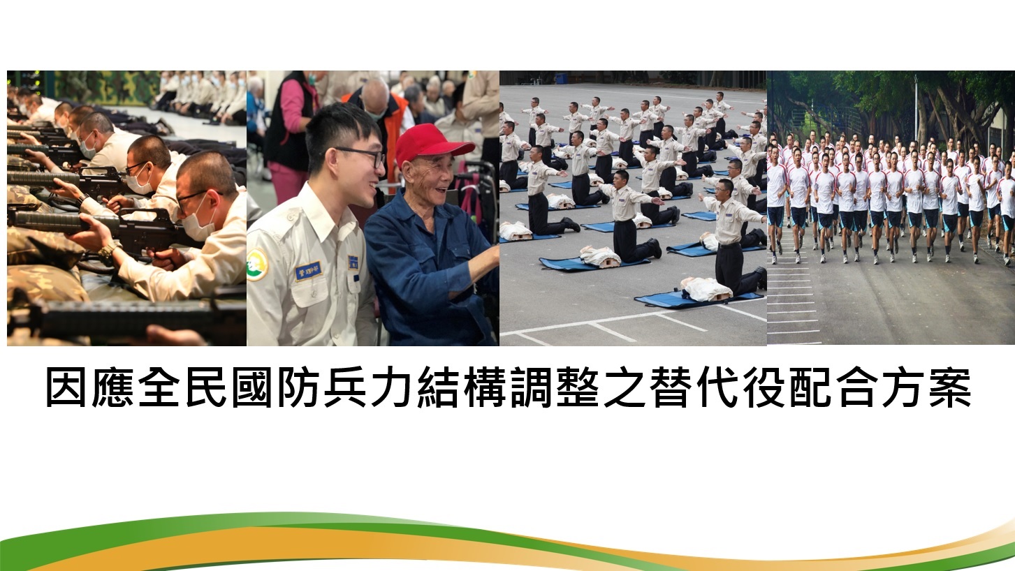 針對此次義務役役期調整方案,替代役役期亦將配合回復1年,替代役薪俸比照國軍義務役標準發給,新增輔助軍事勤務使命。訓練課程除救災避難及緊急救護,亦含全民防衛動員,將來替代役均須配合民防訓練。