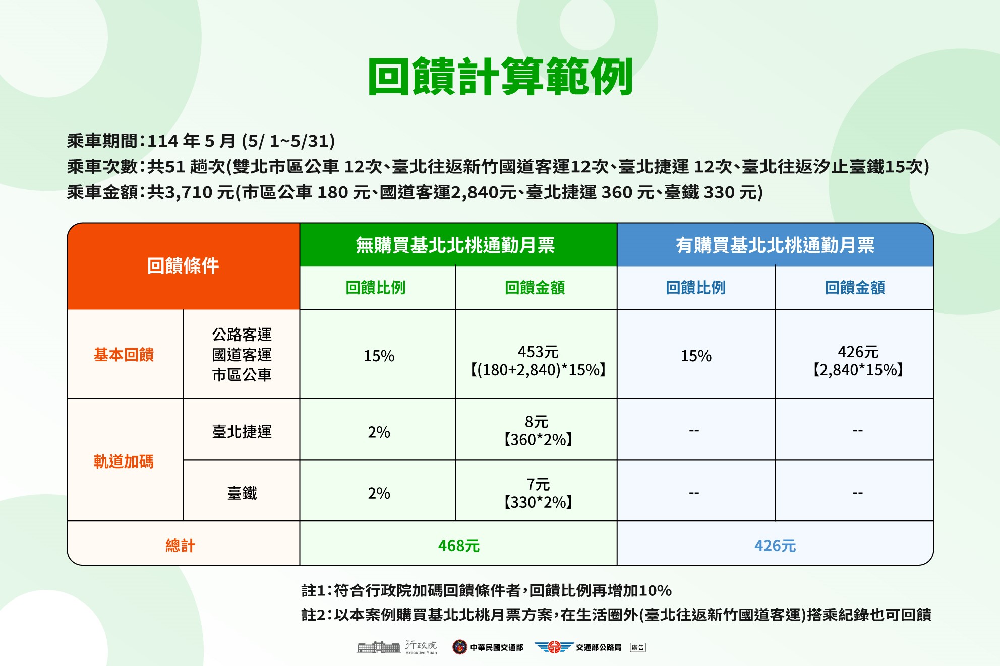 二、為擴大促進公共運輸使用,交通部推出TPASS 2.0公共運輸常客優惠回饋,針對每月持電子票證(需完成記名登錄)搭乘公共運輸11次以上之民眾,提供一定比例乘車金額回饋,方案說明如下: