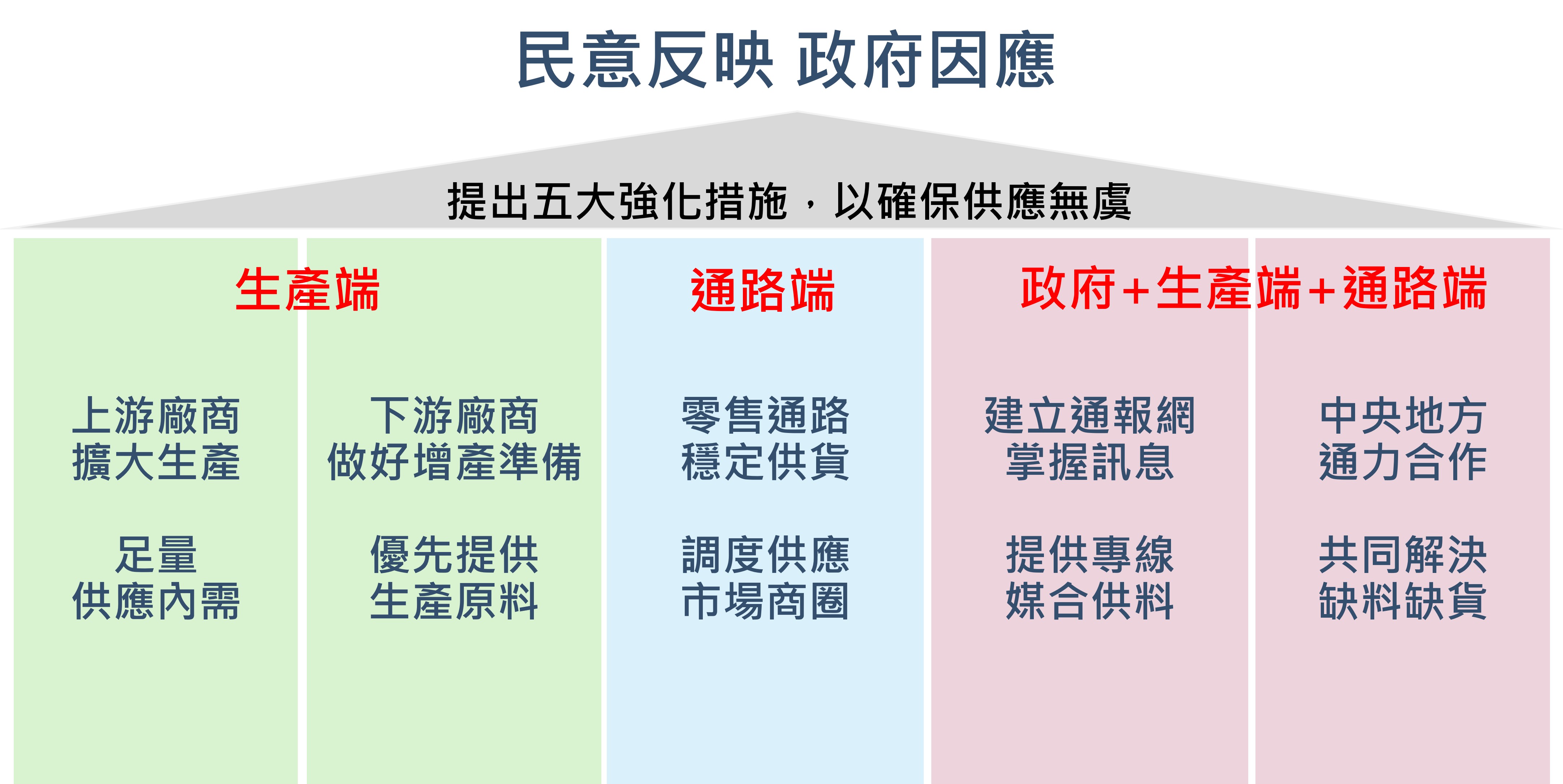 經濟部為穩定國內產業及市場供需狀況,提出五大強化措施,以確保供應無虞: