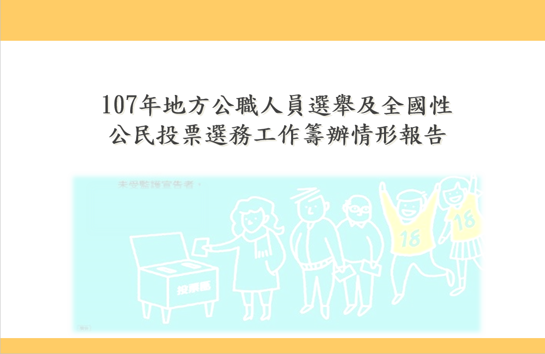 107年地方公職人員選舉係首度與全國性公民投票合併同日舉行投票,也是107年1月3日公民投票法修正後首度舉行之公民投票,對於我國未來地方自治及民主政治發展極具重要性。中央選舉委員會及各直轄市、縣(市)選舉委員會全體選務工作同仁,秉持依法行政,公正、公平、公開辦理選舉及公民投票的超然立場,以積極審慎的態度,共同努力,以順利完成本次選舉與公民投票任務,相關選務工作辦理情形說明如下: