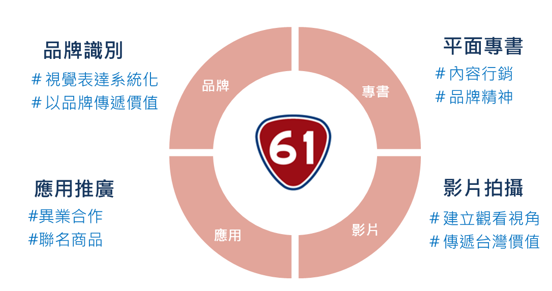 台61線沿線擁有豐富之資源,交通部公路總局借鏡美國66號公路經驗透過建立台61線為海洋之路的品牌、結合異業發展親民聯名商品並彙撰台61工程及生態旅遊專書和紀錄影片等方式,打造全台灣第一個公路品牌,帶領民眾認識台灣文化,彰顯公路建設與環境價值串聯之精神。