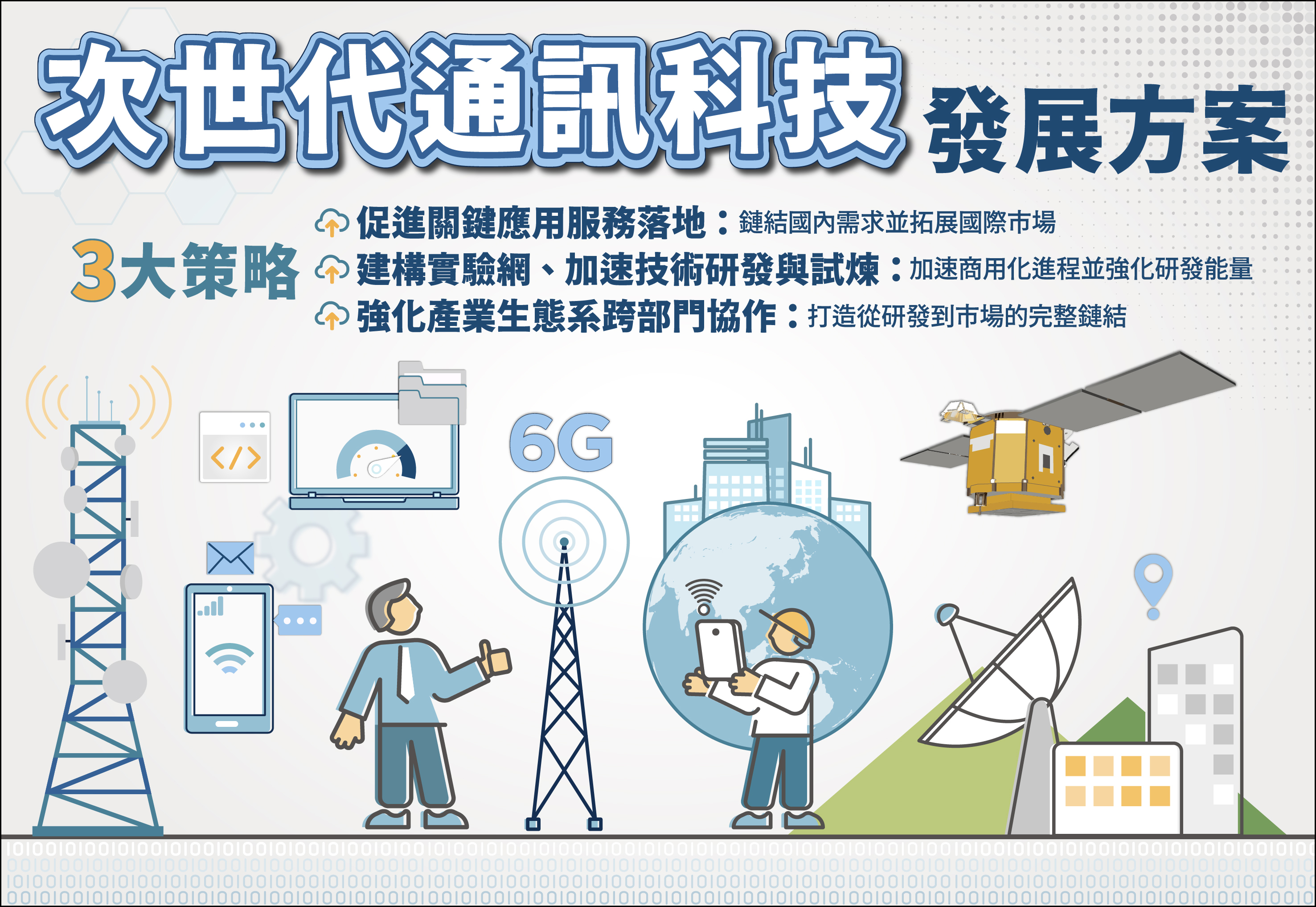 為把握契機,提前布局,且落實賴清德總統五大信賴產業之「次世代通訊產業」及「競逐太空,探索海洋」等施政藍圖,政府在6年內將挹注約270億元,推動「次世代通訊科技發展方案(2025-2030年)」,善用我國在半導體、IC設計、通訊模組等領域的深厚基礎,強化我國通訊產業既有優勢與未來競爭力,並掌握未來6G商用化之發展契機,促進國家數位科技發展與提升民眾社會福祉。