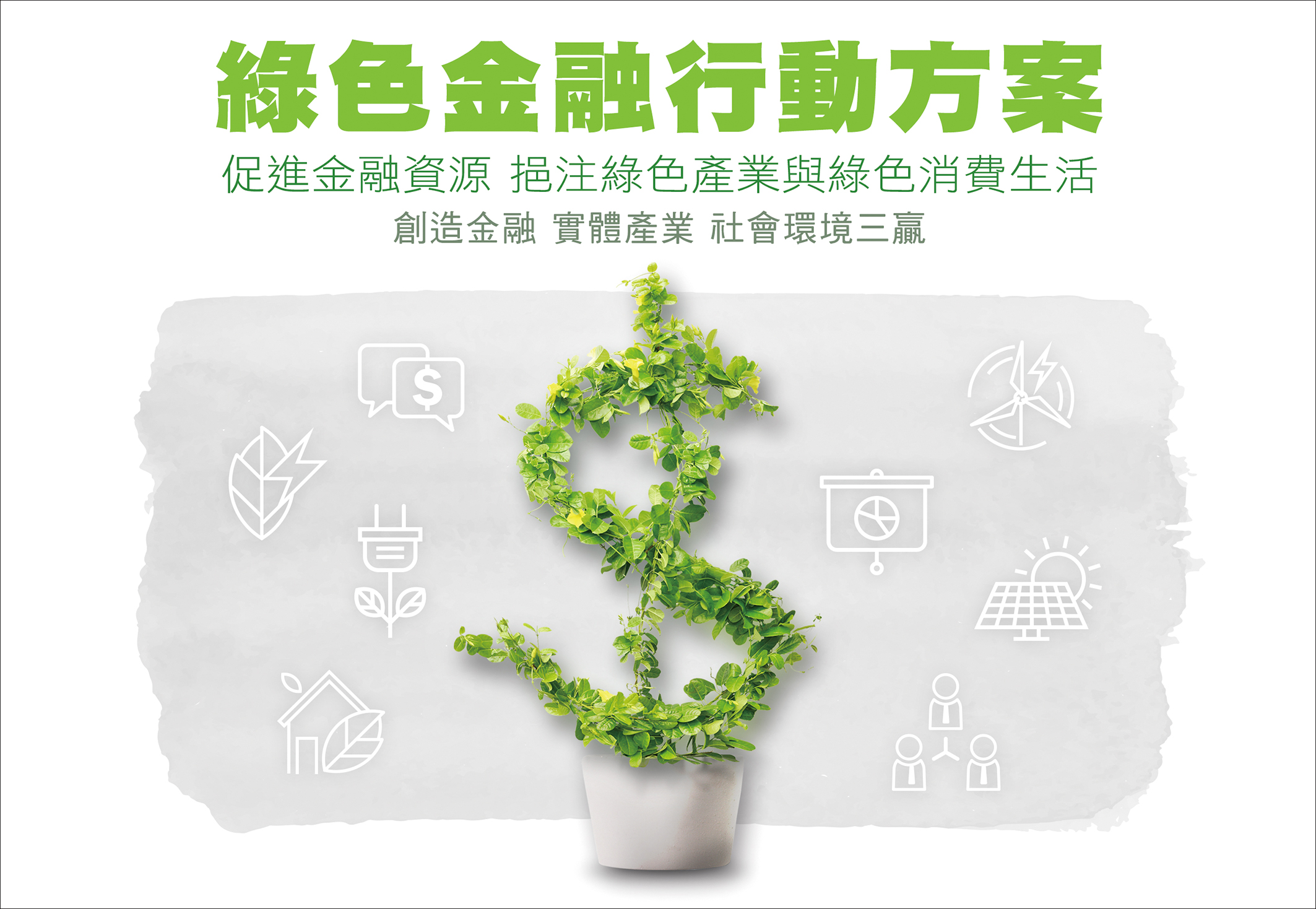為順應綠色金融之國際發展趨勢,並配合我國非核家園、能源轉型、環境減排等重大政策,行政院於106年11月6日核定金管會所提之「綠色金融行動方案」,內容涵蓋授信、投資、資本市場籌資、人才培育、促進綠色金融商品或服務深化發展、資訊揭露、推廣綠色永續理念等7大面向,計25項措施,由金管會、經濟部、財政部、國發會、環保署、國發基金等部會協力合作推動,期能促進金融資源,挹注綠色產業與綠色消費生活,創造金融、實體產業與社會環境三贏。