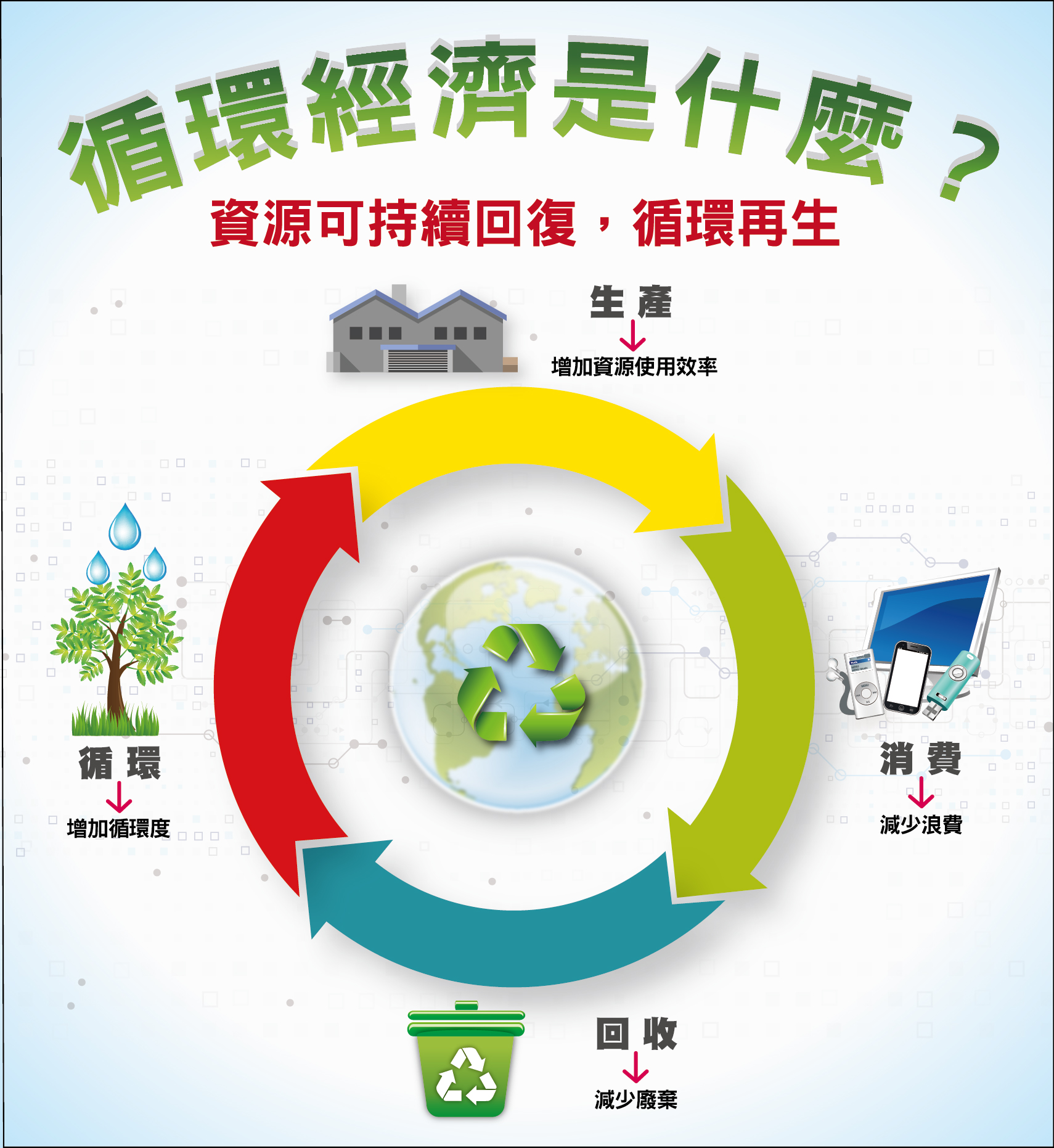 過去幾十年來,全球的商業發展在「開採、製造、使用、丟棄」的線性經濟脈絡下,廠商為刺激消費,產品不斷推陳出新,消費者也習慣汰舊換新,這種「用完就丟」的經濟發展法則,不但造成地球資源耗竭,同時產生出各式廢棄物。然地球資源不會永遠源源不絕,廢棄物也不會憑空消失,顯然傳統的線性經濟已經走到盡頭,取而代之的是強調「資源可持續回復,循環再生」的循環經濟。現在,這股新趨勢正在世界各國蓬勃發展中。