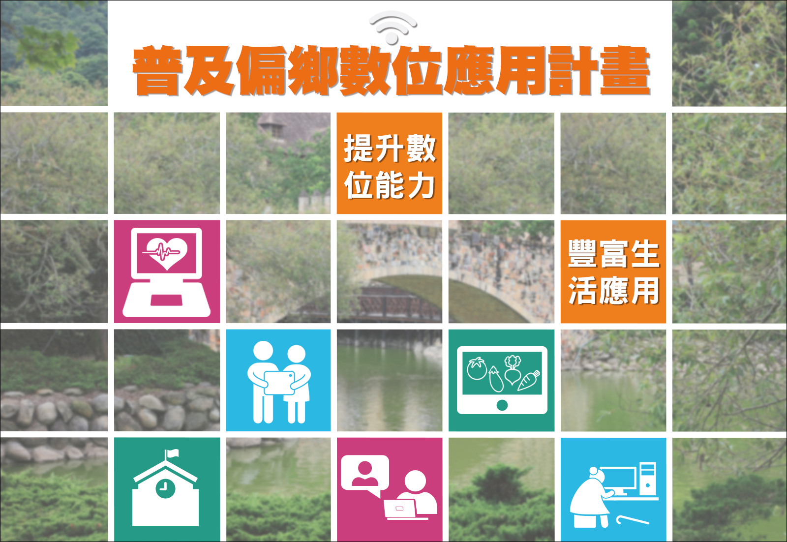 為落實蔡英文總統「數位國家、智慧島嶼」的主張,行政院於105年11月提出「數位國家‧創新經濟發展方案」,期跳脫過去產業發展瓶頸,強化數位基磐建設、發展數位經濟、實現平等活躍之網路社會及打造服務型數位政府。配合該方案「發展活躍網路社會」之願景,保障數位人權及弱勢族群公平參與的機會實為重要任務,因此政府著手推動「普及偏鄉數位應用計畫」,以跨部會合作進行資源整合與共享,協助數位弱勢族群學習運用網路科技工具,應用於數位生活、數位行銷、線上學習,進而豐富生活。