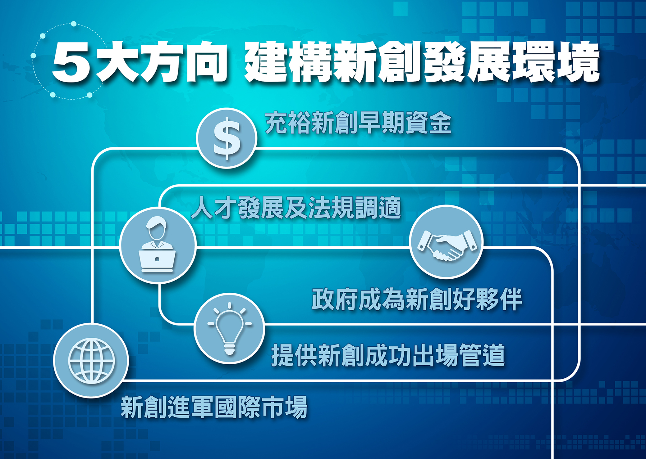 二、 5大政策主軸,催生台灣旗艦新創