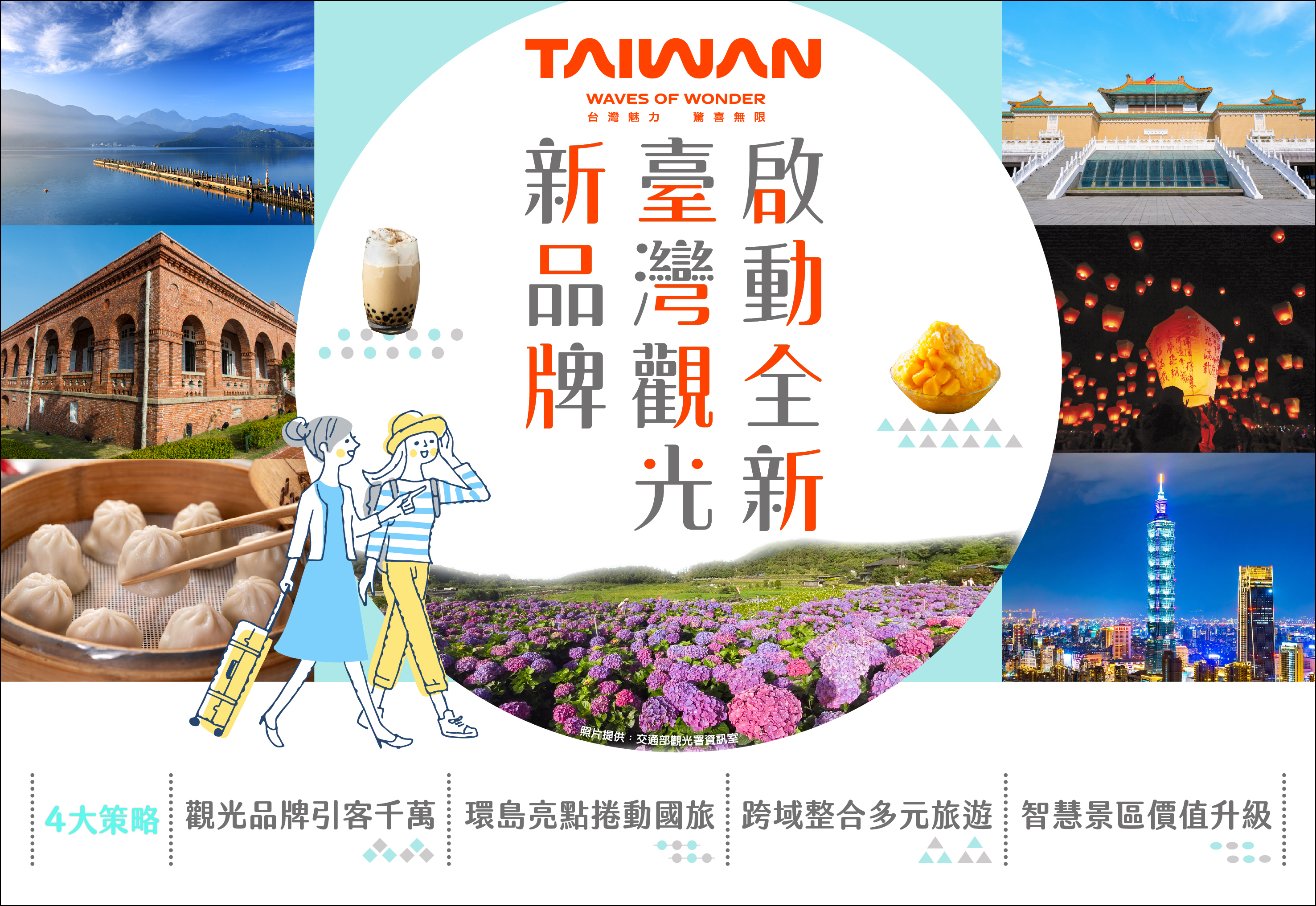 臺灣擁有許多世界級的景觀,整年都有熱鬧非凡的節慶活動,多元族群綻放獨特文化,多年來受到國際媒體的一再青睞與好評。面對疫後全球觀光市場的激烈競爭,政府正透過啟動「全新臺灣觀光新品牌」的策略布局,融入永續及數位國際發展趨勢,期將臺灣觀光品牌再深植國際友人心中,並使觀光業成為臺灣新的兆元產業。