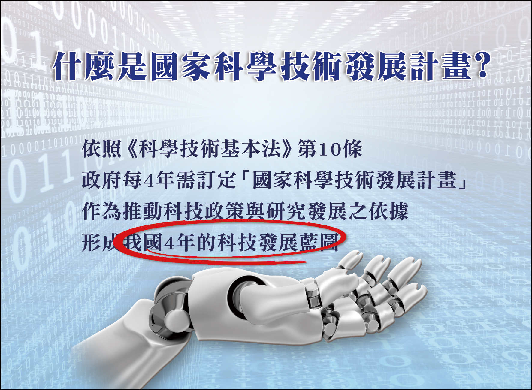 科技創新是經濟發展的關鍵,為協助產業轉型與升級,各國無不積極投入創新研發,為國家尋找未來發展方向,我國依據《科學技術基本法》第10條規定,每4年訂定「國家科學技術發展計畫」,作為推動科技政策與研究發展之依據,最新一期之計畫(民國106-109年)業經行政院於106年9月28日通過,內容涵蓋「創新再造經濟動能」、「堅實智慧生活科技與產業」、「育才競才與多元進路」與「強化科研創新生態體系」等4大目標,是政府實現產業創新轉型之基石。