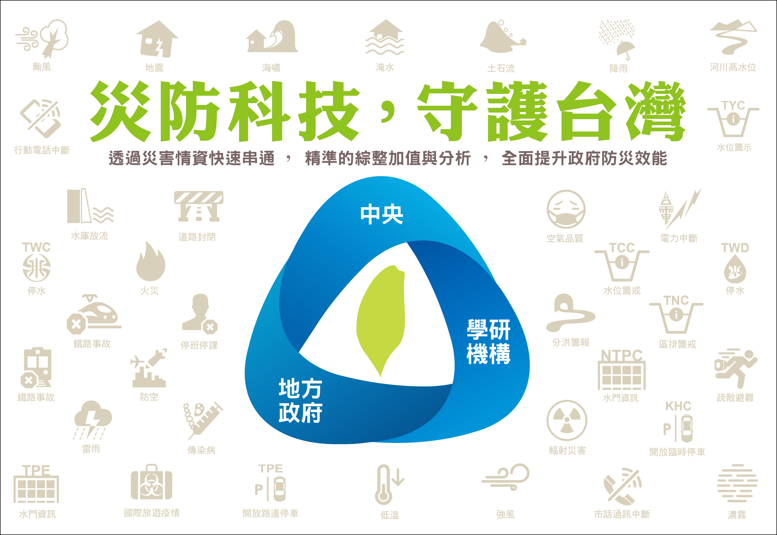 全球氣候變遷,台灣發生災害的風險大增,為有效降低災害威脅,以科技與科學知識為基礎,透過災害情資快速串通且精準的綜整加值,提早分析災害的各種情境變化及背後所帶來的風險與衝擊,提升政府的防災效能,降低民眾生命財產的損失。