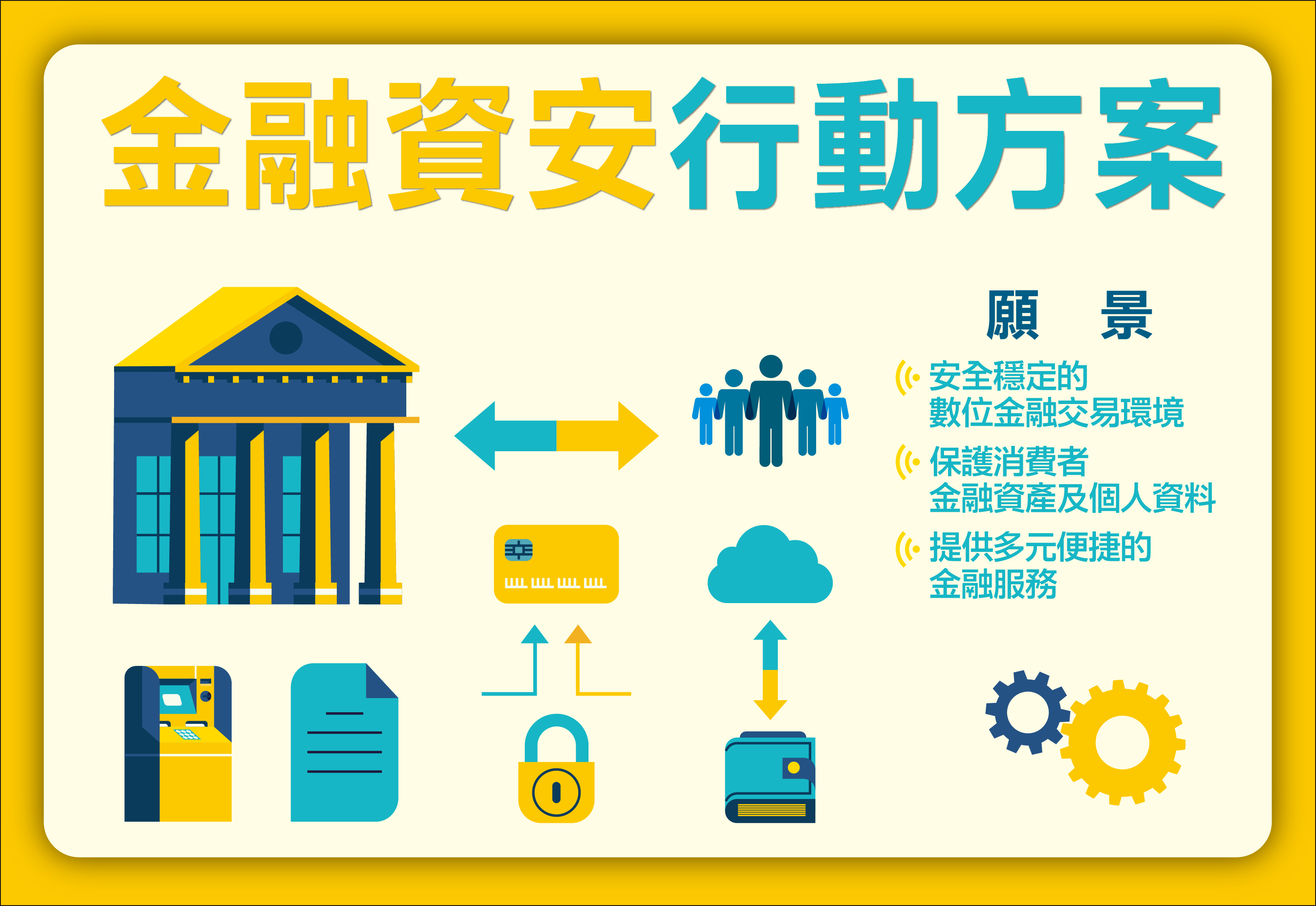 金融市場的穩定發展,對國家經濟成長、持續吸引投資至關重要,金融體系的穩健運作,更攸關國家經濟安全,而金融業在發展科技創新時,勢必會帶來新的資安風險,所以完善資安防護機制很重要。「金融資安行動方案」的推動,即是要建構安全的金融服務發展環境,讓金融機構能在資訊安全的基礎上,提供消費者更安心、便利,且多樣不中斷的金融服務。