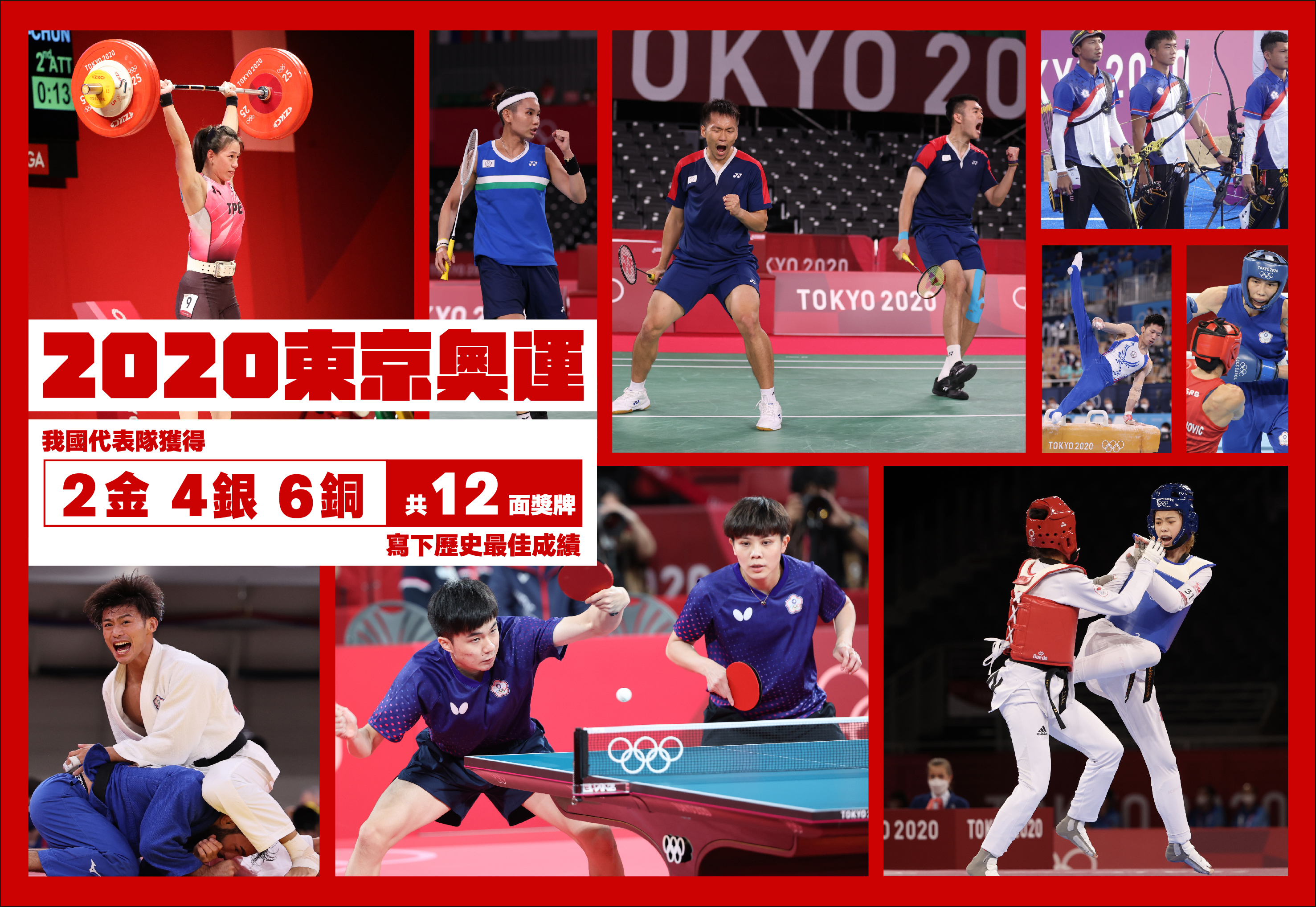 此外,為爭取東京奧運(下稱「東奧」)參賽資格及佳績,我國自107年2018雅加達亞運結束後即啟動「黃金計畫」,同時提早部署備戰2024巴黎奧運,從培訓、後勤、醫療等,給選手最好的照顧與支援,並在此次東奧開花結果,我國代表隊共獲得2金4銀6銅共12面獎牌,不但超越2016里約奧運1金2銅,更突破2004雅典奧運2金2銀1銅紀錄,寫下歷史最佳成績,其中在羽球、柔道、體操、高爾夫、拳擊和空手等項目,更是首度奪牌。