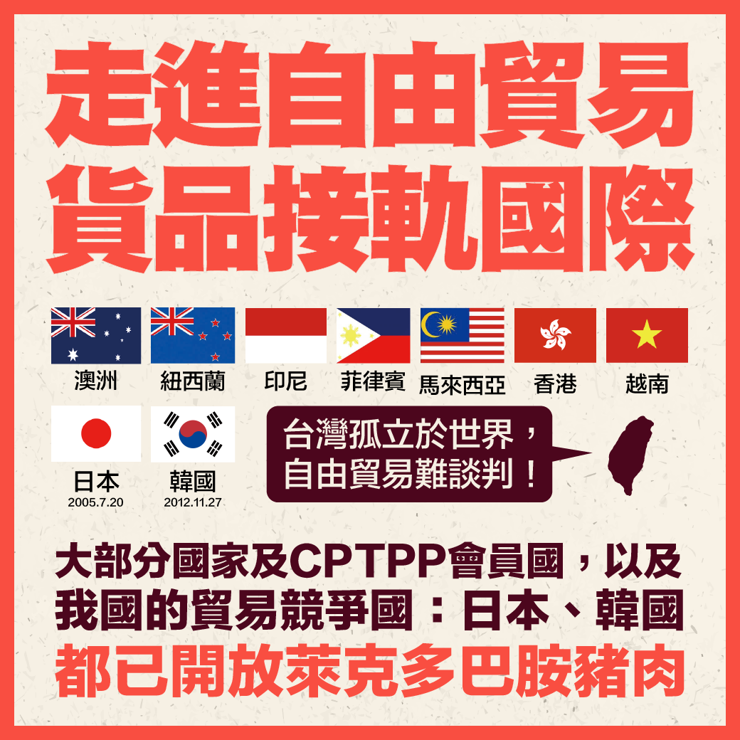 基於國家經貿利益、整體經濟戰略發展,蔡英文總統於去(109)年8月28日宣布,將在守護國民健康與保障豬農收益的前提下,依據科學證據與國際標準,訂定食品安全容許量,自今(110)年1月起,有配套性的開放含有萊克多巴胺(以下簡稱萊劑)之美豬,及30個月齡以上之美牛進口,希望藉此掃除臺美洽談雙邊貿易協定(BTA) 及自由貿易協定(FTA)的最大阻礙,深化臺美經貿關係,並進一步深化與各國經貿互動,擴大國際經貿發展空間。