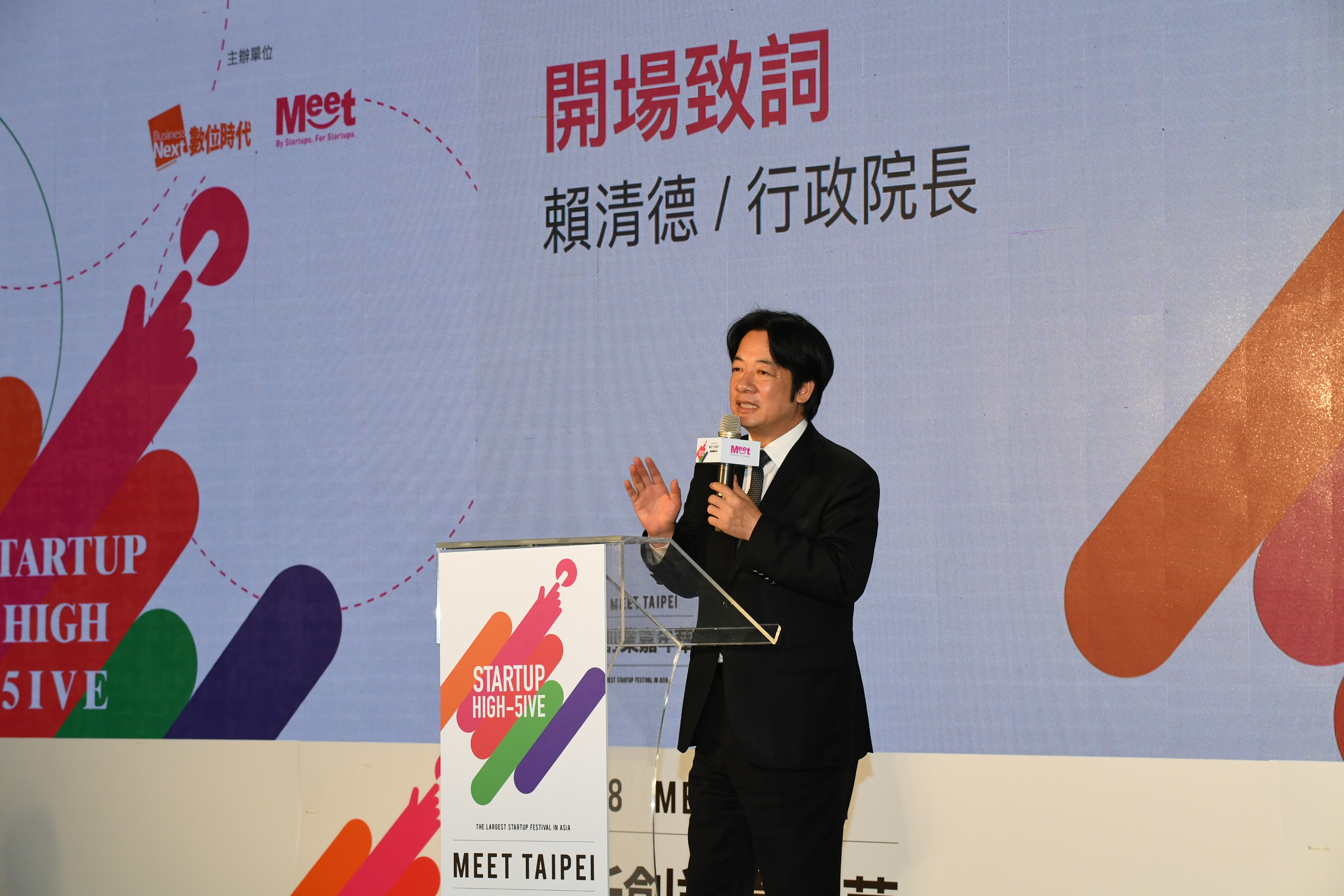 行政院長賴清德今(16)日出席「2018Meet Taipei創新創業嘉年華」時表示,為鼓勵台灣新創產業發展,政府將從資金、法規及人才方面提供協助,讓新創事業走向國際,再創台灣奇蹟。