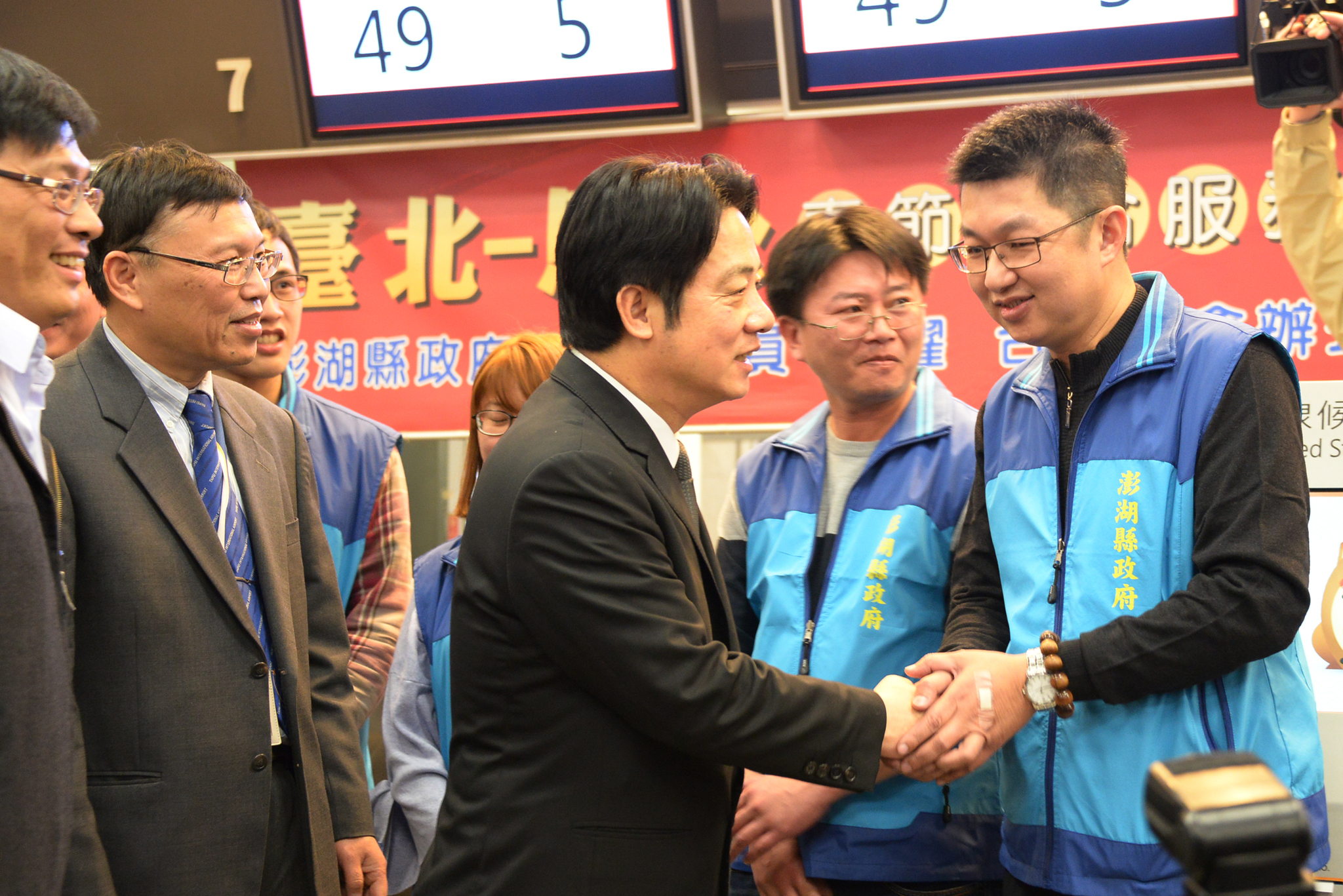 隨後賴院長至松山機場視察時表示,春節期間許多離島及從中國大陸返鄉的鄉親搭乘飛機,請民航局務必要落實航運安全及交通順暢。今(107)年離島包括金門、馬祖及澎湖,總計約有24萬5千個旅運座位,較去(106)年增加,民眾出遊返鄉只要做好時間分散,春節期間的離島旅運應不致有問題。