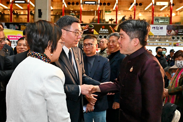 卓院長致詞結束後,與僑委會徐委員長手持電子火把點燃螢幕中的聖火臺,象徵完成啟動儀式,接續與行政院龔明鑫秘書長、劉鏡清政務委員兼國發會主委、李慧芝發言人、徐委員長、泰國貿易經濟辦事處文代表等貴賓合影留念。隨後,卓院長在104人力銀行黃亭綺資深副理陪同介紹下,參觀海科科技有限公司、中鼎工程、鼎泰豐等展區。