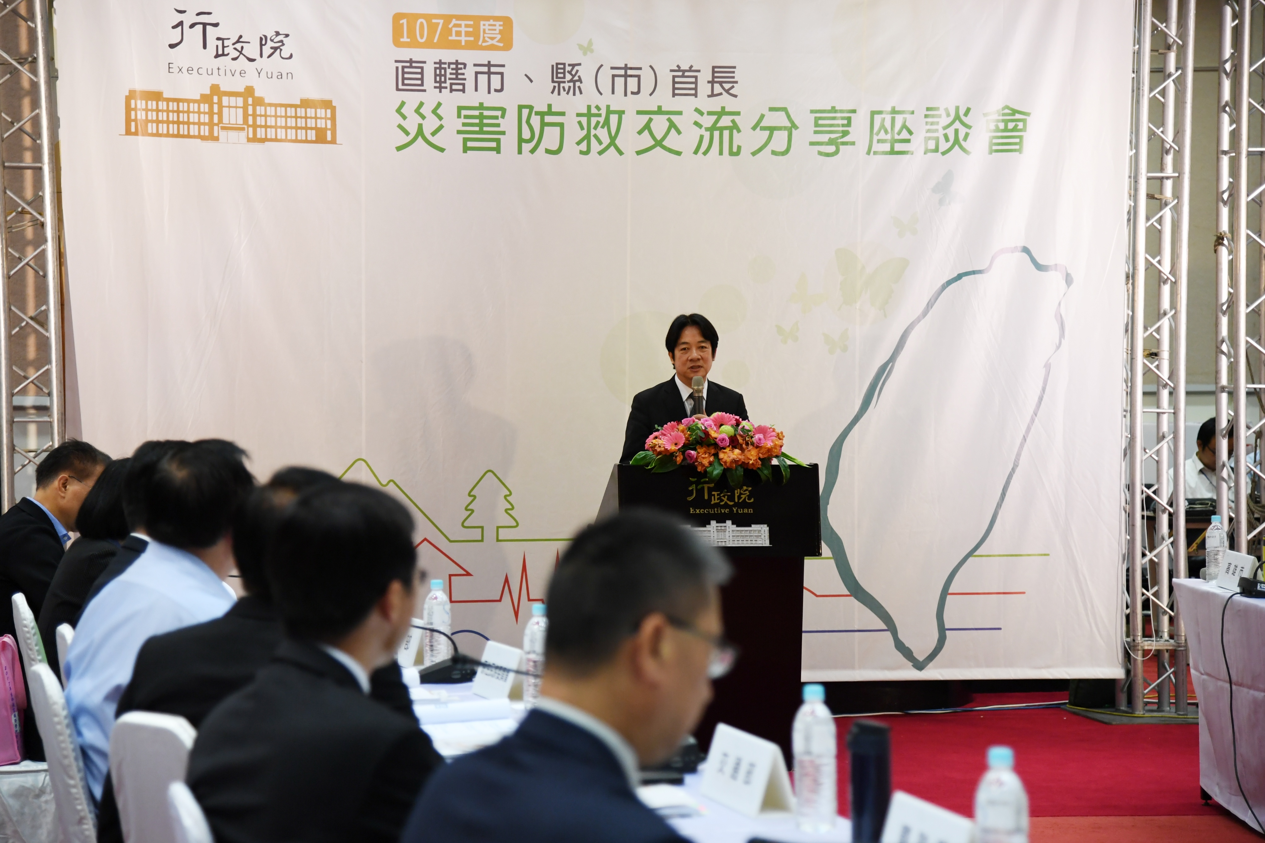 行政院長賴清德今(20)日出席「107年度直轄市、縣(市)首長災害防救交流分享座談會」時表示,行政院舉辦此座談會,希望藉由中央與地方聯手,持續精進各項防救災業務,期盼多一分付出、減少一分災害,讓民眾獲得更多安全保障。 賴院長以嘉義市為例,過去許多逢雨必淹之處,經由涂醒哲市長和市府團隊逐一檢視雨水下水道及排水通路,積極清淤,近兩三年來淹水情形已獲改善。此外,其他各縣市長也持續精進防災相關作為,減少災害發生。 賴院長表示,各縣市政府面臨困難時,若有好的解決方法,亦可提供其他縣市政府參考,並作為中央政府擬訂政策的依據。目前北北基、桃竹苗、中彰投,及雲嘉南、高屏與澎湖等,都有很好的區域聯防架構,希望藉由今天的交流座談會,中央與地方彼此分享經驗,進一步提升區域聯防效益。 賴院長強調,政府推動防救災業務時,應落實到基層第一線。期盼藉由中央政府、直轄市、縣市政府與鄉鎮市區公所共同合作,聯合推動防救災業務,提升整體防救災效率。 賴院長並頒發「107年度災害防救深耕第2期計畫績優單位」獎項,感謝各直轄市、縣(市)政府及鄉(鎮、市、區)公所在防災工作上辛勞與努力。此外,座談會邀請22個直轄市、縣(市)首長及代表共同參與「中央與地方相互支援通用協定啟動」儀式,強調防救災工作不分中央與地方,未來更應加強中央地方相互支援合作,所有防救災機關單位可運用通用協定來簡化相互支援協定簽訂的行政程序,有效提升災時應變效能。 行政院災害防救辦公室表示,目前正值防汛期,座談會的「災害防救整備強化作為」重要討論議題包括:內政部「汛期整備應變措施及暑期大型活動公共安全重點工作」及中央氣象局「氣象智慧資訊應用於地方政府停班停課決策」報告。 行政院災害防救辦公室同時指出,今(107)年0206花蓮地震,中央及地方皆全力投入搶救與緊急應變,因此特別邀請花蓮縣政府報告「0206地震災害搶救經驗」,內政部及台南市分別報告「中央初期應變處置及台南市協助花蓮地震救災經驗」,目的在於透過研討及經驗傳承,讓其他地方政府均能共同學習,精進後續防救災作為。