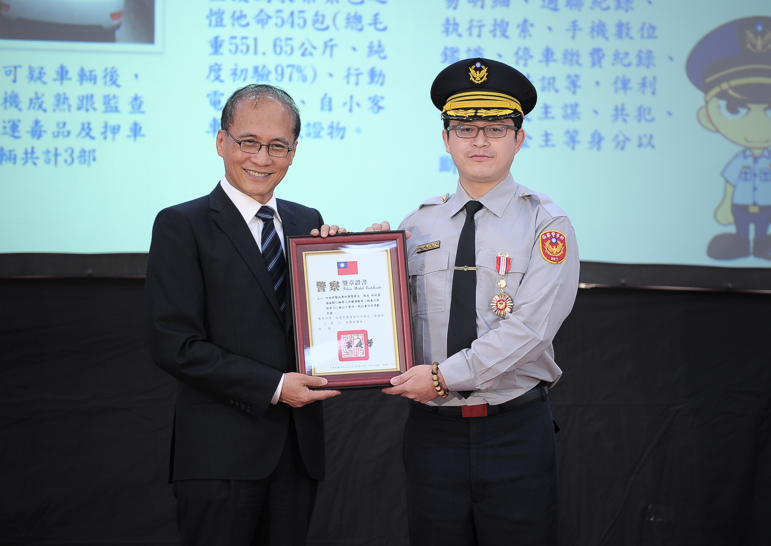 今日林院長頒發破獲反毒、反詐騙案獎座及警察獎章給有功單位、人員和協助反詐騙的超商與金融機構,同時也以日前警察同仁在緝毒時遭毒犯開車拖行受傷為例指出,政府未來會有更完善的措施,讓同仁無後顧之憂,勇於執法。林院長鼓勵並期勉警察同仁要有正義感及熱忱,勇於打擊犯罪,並與法務部及相關部會合作無間,將治安工作做好。