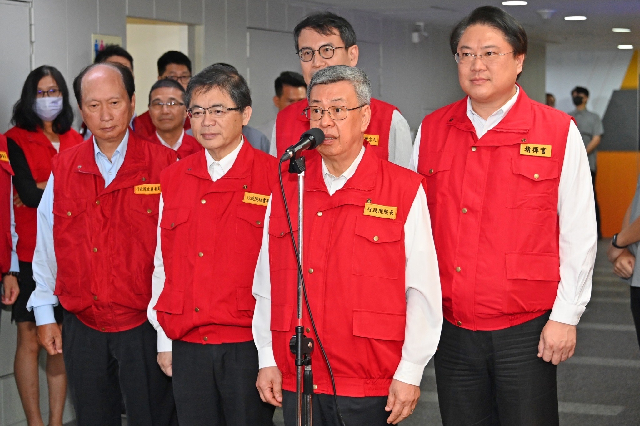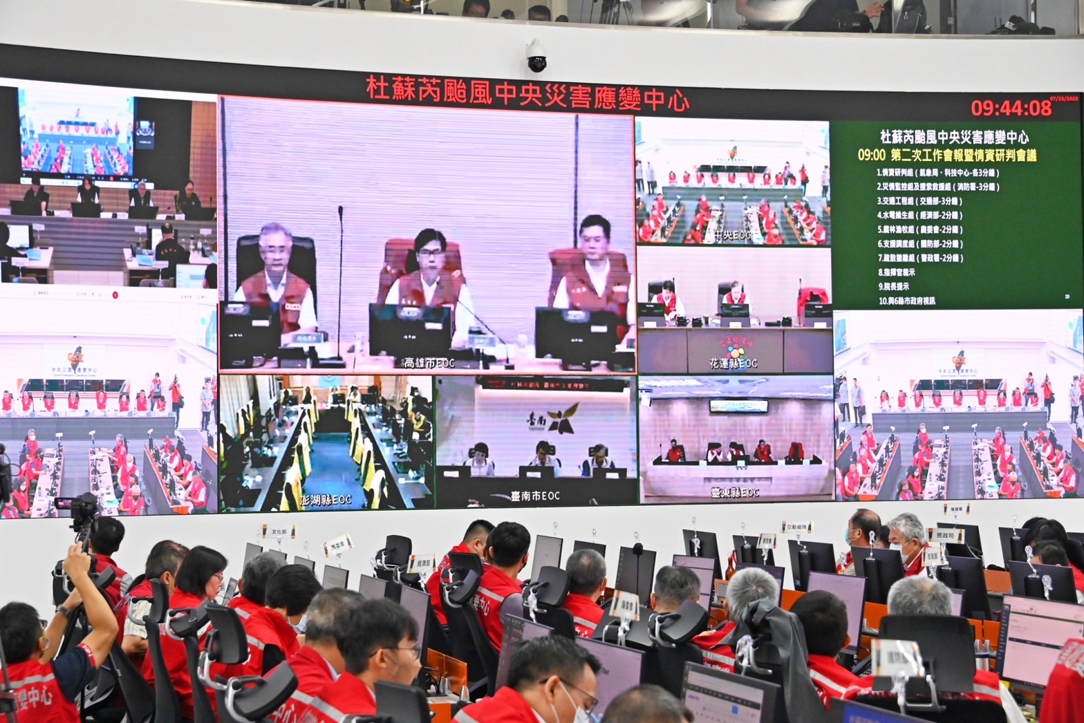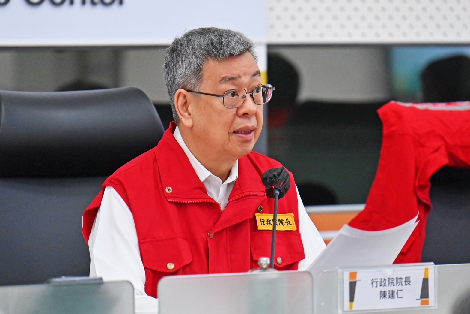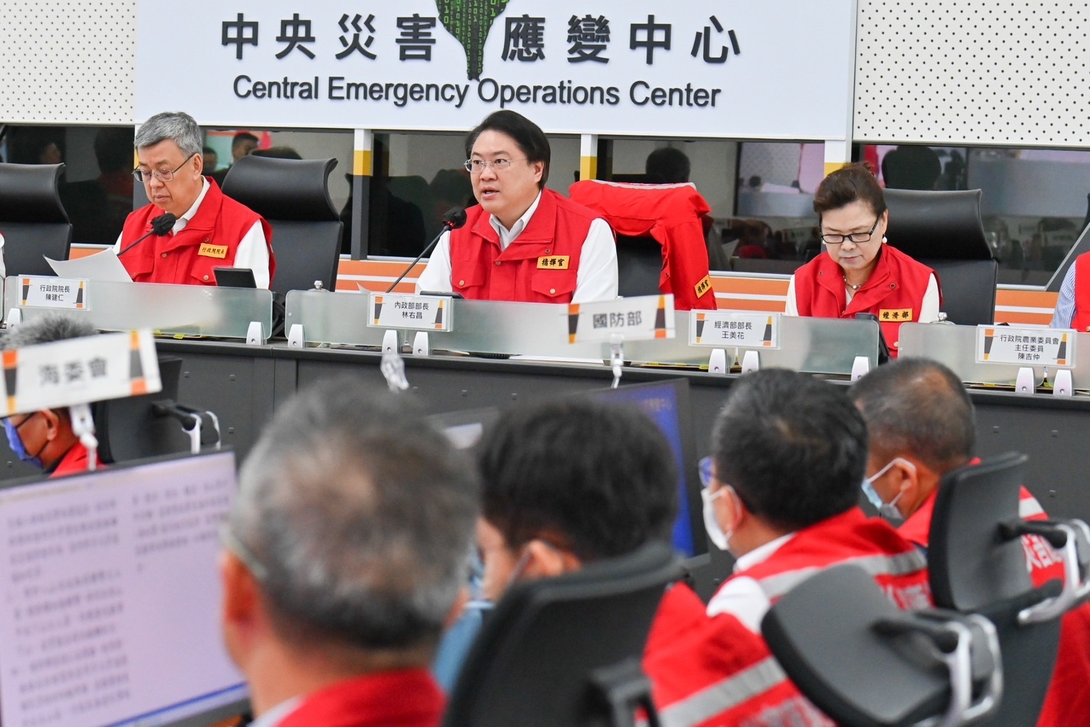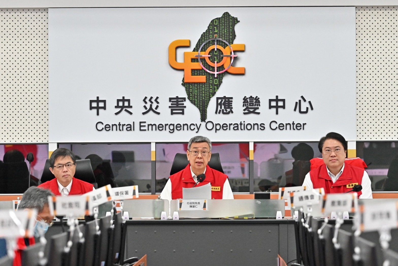 此行,陳院長抵達中央災害應變中心後,首先聽取情資研判組、災情監控組、搜索救援組、交通工程組、水電維生組、農林漁牧組、支援調度組及疏散撤離組報告,並於致詞結束後,分別與花蓮縣副縣長顏新章、臺東縣長饒慶鈴、高雄市長陳其邁、臺南市長黃偉哲、澎湖縣長陳光復、屏東縣長周春米等6縣市地方正副首長視訊連線,瞭解地方因應本次颱風的整備情形。