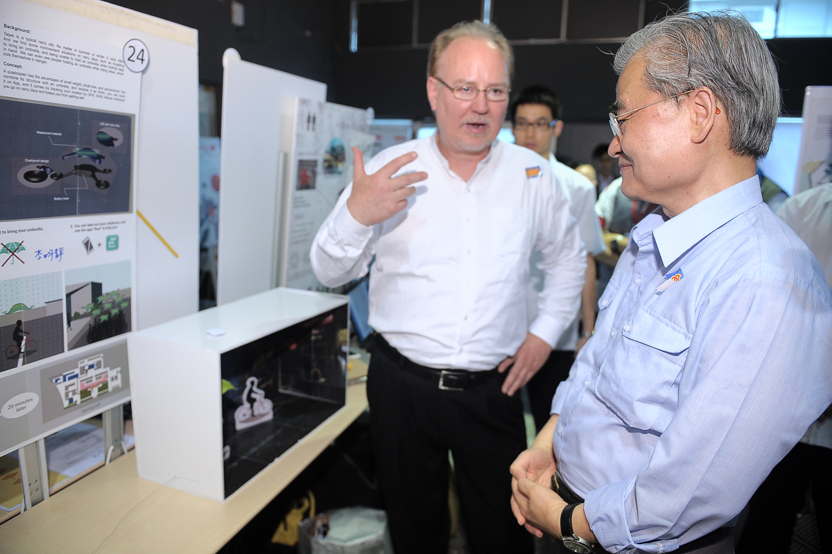 此外,毛院長也頒獎表揚「傑出互動獎」的得獎隊伍,並在Larson教授陪同下,參觀成果展,討論熱烈。