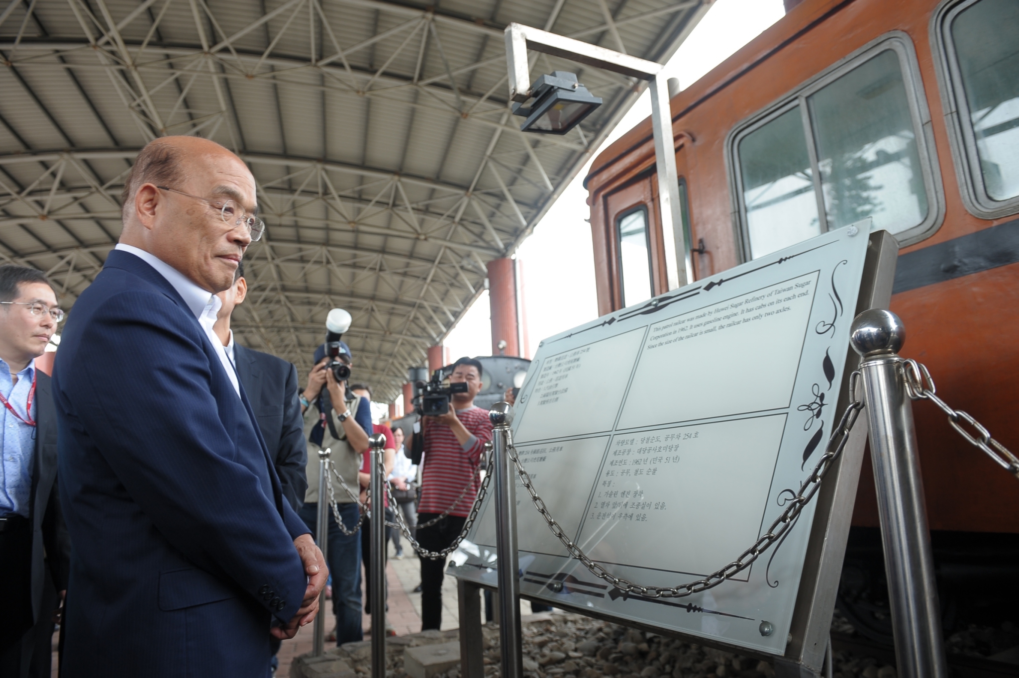蘇院長表示,鐵路一村原要拆除作為停車場,但經縣政府與立法委員的爭取,得以維持現狀,保存老宿舍,行政院除同意全額補助「苗栗鐵路一村復甦計畫」經費以外,蘇院長建議整體規劃可以「火車頭」為主題,增加動態內容,並改良動線,讓火車迷或學童來此遊玩,可看動態影片、玩「投煤練習」等遊戲、吃鐵道便當、買火車模型與相關伴手禮,或透過達人介紹台灣的鐵道歷史。