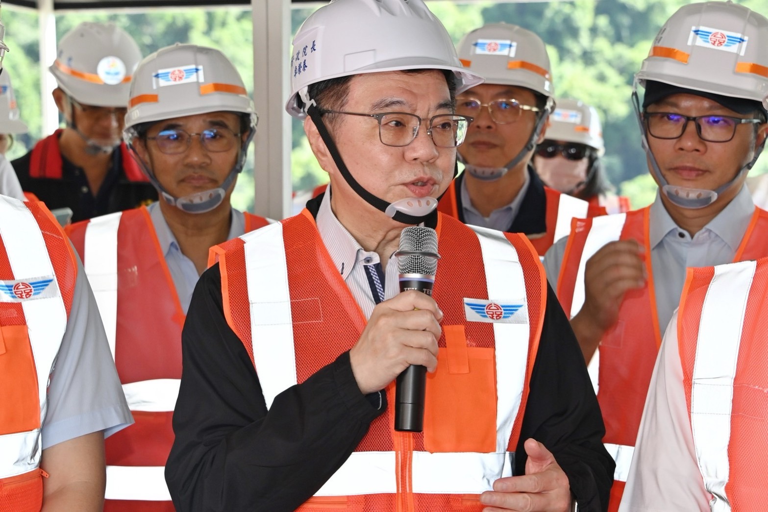 致詞結束後,卓院長偕同行政院李慧芝發言人、交通部陳世凱部長、經濟部連錦漳次長、公路局陳文瑞局長、水利署王藝峰副署長、行政院東部聯合服務中心洪宗楷執行長、郭應義副執行長、臺鐵公司杜微董事長、馮輝昇總經理、傅崐萁立委、鄭天財立委及花蓮縣政府建設處鄧子榆處長等人,在臺鐵花蓮工務段李建勳段長及公路局林文雄分局長解說下,現地視察鐵、公路搶修及復建情形。