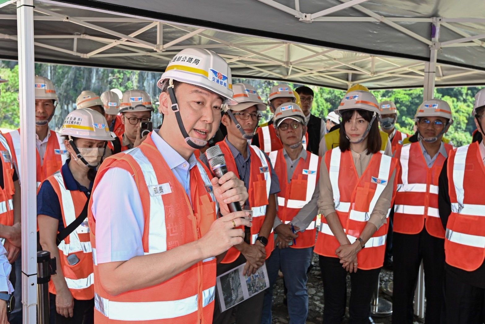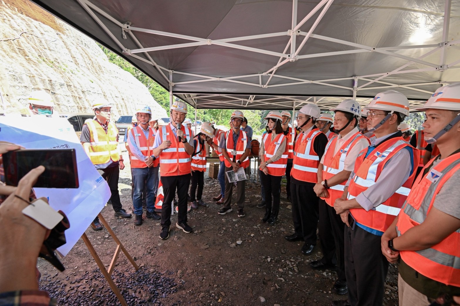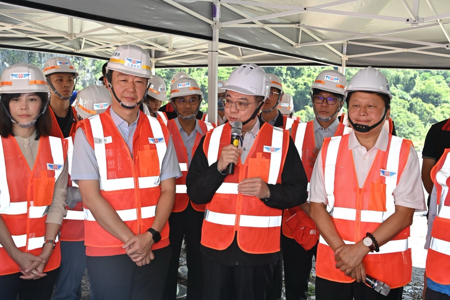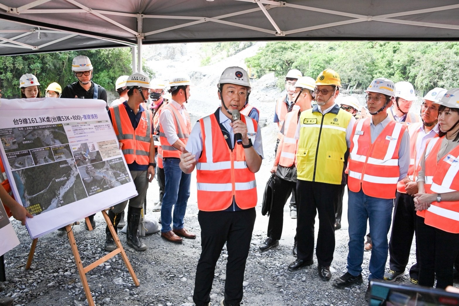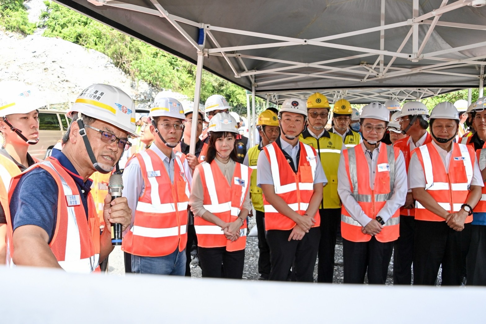 卓院長致詞時表示,他今日前來不僅關心當地交通建設搶修復原工期,更關心工法及施工安全。目前福德祠邊坡復建工程已超前進度,預計本(9)月底完成,而天祥以下新建的4處明隧道庇護設施工程相當重要,規劃115年底前完成,請公路局在確保安全無虞情形下,儘量縮短該等工程從發包至施工之過程,讓所有進出民眾得到更好的安全保障。