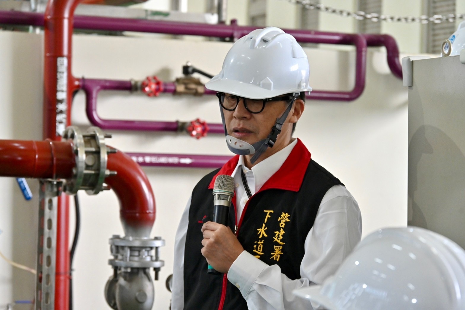 陳院長指出,政府自2001年起陸續規劃澎湖馬公地區污水下水道系統工程,現階段工程共分成3期推動,其中第1、2期工程經費已核定33.46億元,政府未來將逐步完備澎湖污水下水道系統的建設。院長進一步說,第1期工程建設的2座水資源回收中心,已於去年底完工,目前每日可處理1,830噸污水,服務範圍以馬公市西邊的光榮里與東邊的菜園里、石泉里為主,其中一座即是今日視察的「光榮水資源回收中心」;而未來第2、3期工程完工後,可進一步將2座水資源回收中心的處理量能提升至每日2,980噸、污水接管普及率提升至9.61%。此外,隨著澎湖觀光日益發展,用水需求亦逐漸增加,經處理的放流水可運用於公共空間景觀維護澆灌,而海水淡化廠的水資源則可充分供應民生用水,有效紓解離島用水壓力,是資源永續利用的最佳方法。