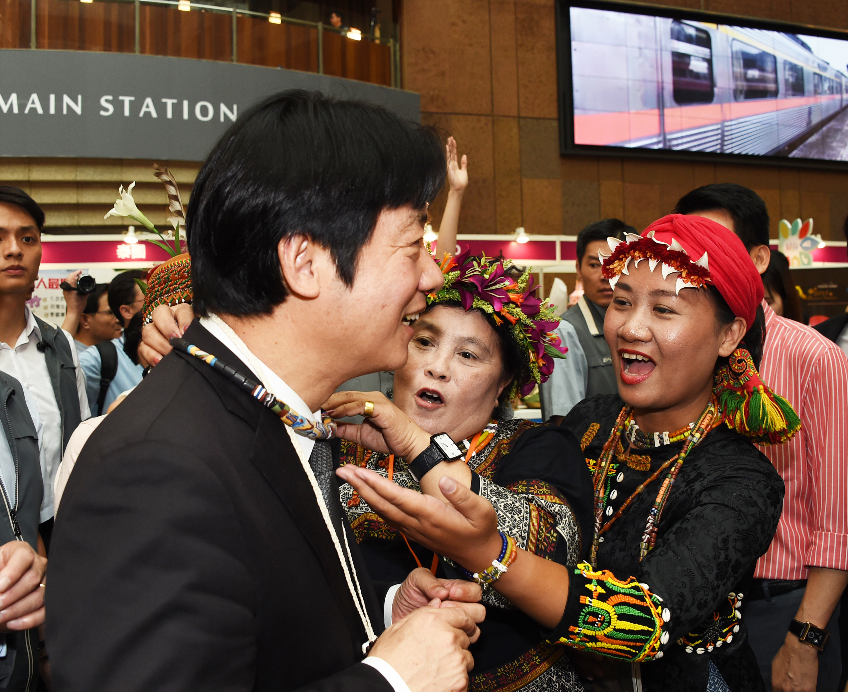 賴院長隨後與亞太各國大使及貴賓代表一同敲鑼,宣布活動正式啟動,並至各個攤位互動交流,如品嚐印度奶茶、觀賞邦交國諾魯的表演、試玩台南攤位巨型彈珠台、試飲新竹客家擂茶等,並與外交部青年大使經驗交流及合影留念。
