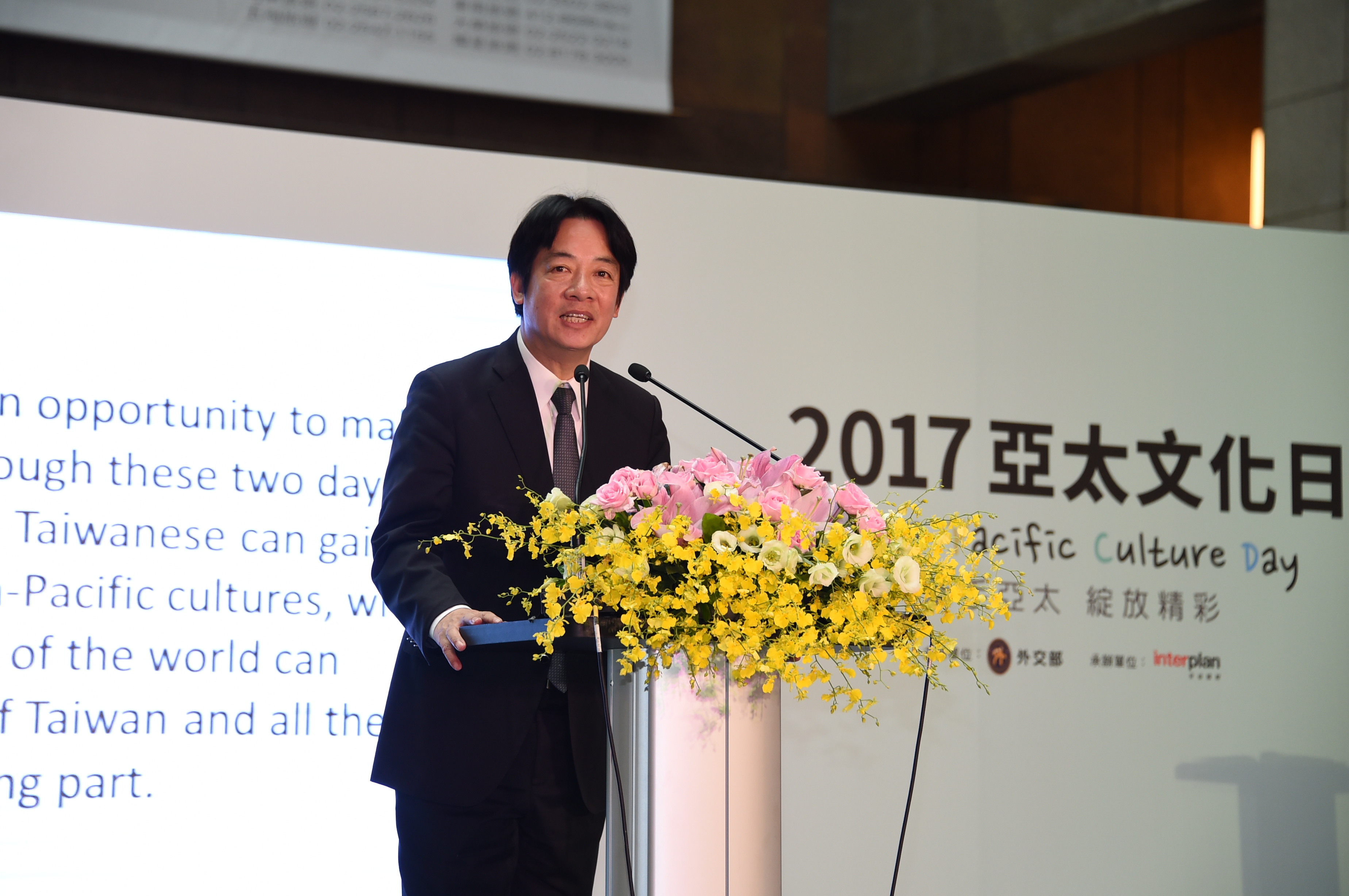 行政院長賴清德今(23)日出席「2017亞太文化日」開幕典禮時表示,今年是第6屆「亞太文化日」,過去蔡英文總統及陳建仁副總統都曾蒞臨參加,歷年參與民眾也達10至20萬人,顯示活動成果相當豐碩。此活動不僅促進亞太國家彼此瞭解,也讓亞太各國感情更加緊密。