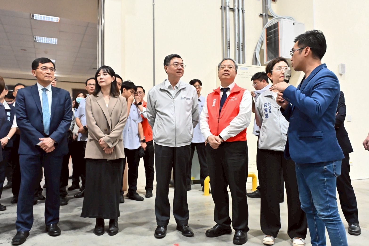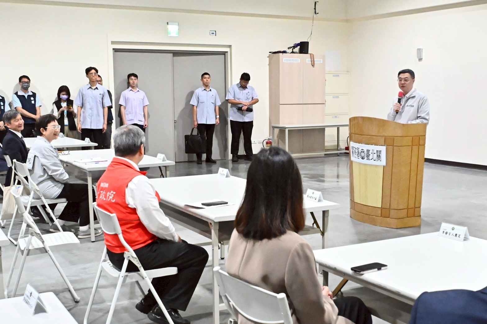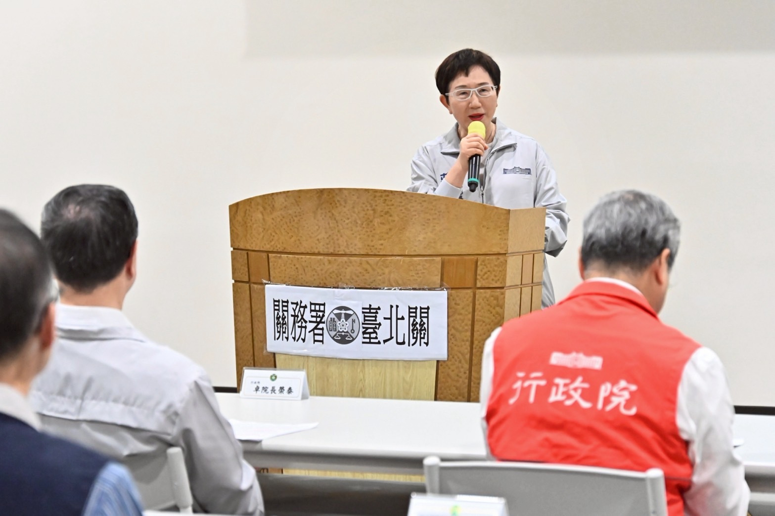 卓院長抵達後,依序視察遠雄自貿港區交接貨物區域、貨物進出及暫存區域與高價值貨物存放區域,了解自貿港區防杜違規轉運實務執行情形,並聽取財政部關務署彭英偉署長說明「海關防杜違規轉運執行及成效」。包括行政院龔明鑫秘書長、李慧芝發言人、財政部莊翠雲部長及經濟部何晉滄次長等均陪同院長視察臺北關。