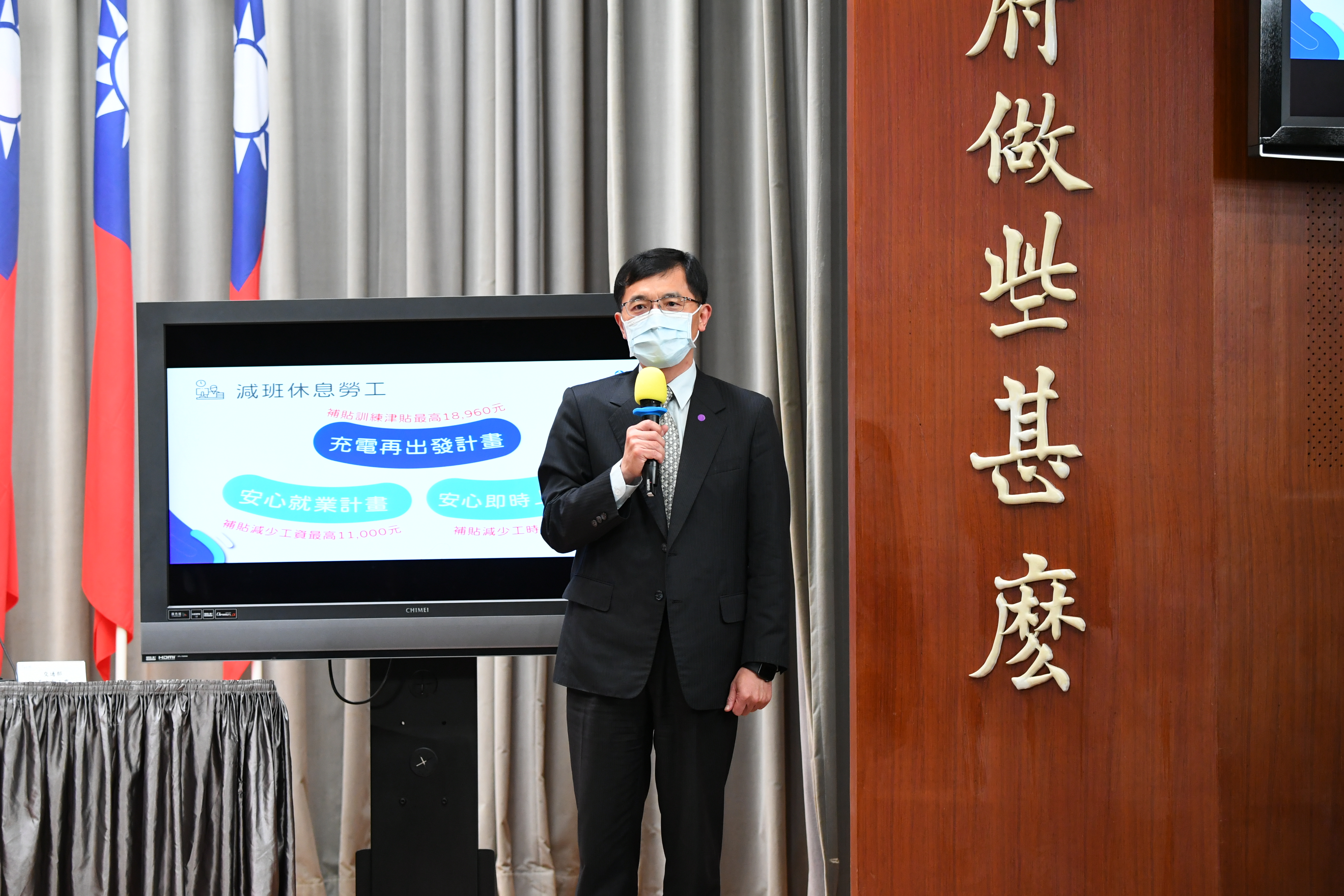 行政院政務委員龔明鑫今(7)日邀集勞動部許銘春部長、交通部黃玉霖次長及經濟部林全能次長召開行政院紓困振興方案「勞工就業問題協助」記者會。龔政委表示,政府針為整個疫情的經濟面作戰,對於就業與企業能量的保存格外重視。就業是經濟最重要的根本,沒有就業,就沒有經常性薪資可領取,進而無法保障家庭生活、促進永久性的消費,因此核心在「就業」。因此,政府將針對哪些族群最可能遭受失業的衝擊,給予最集中式的救濟。