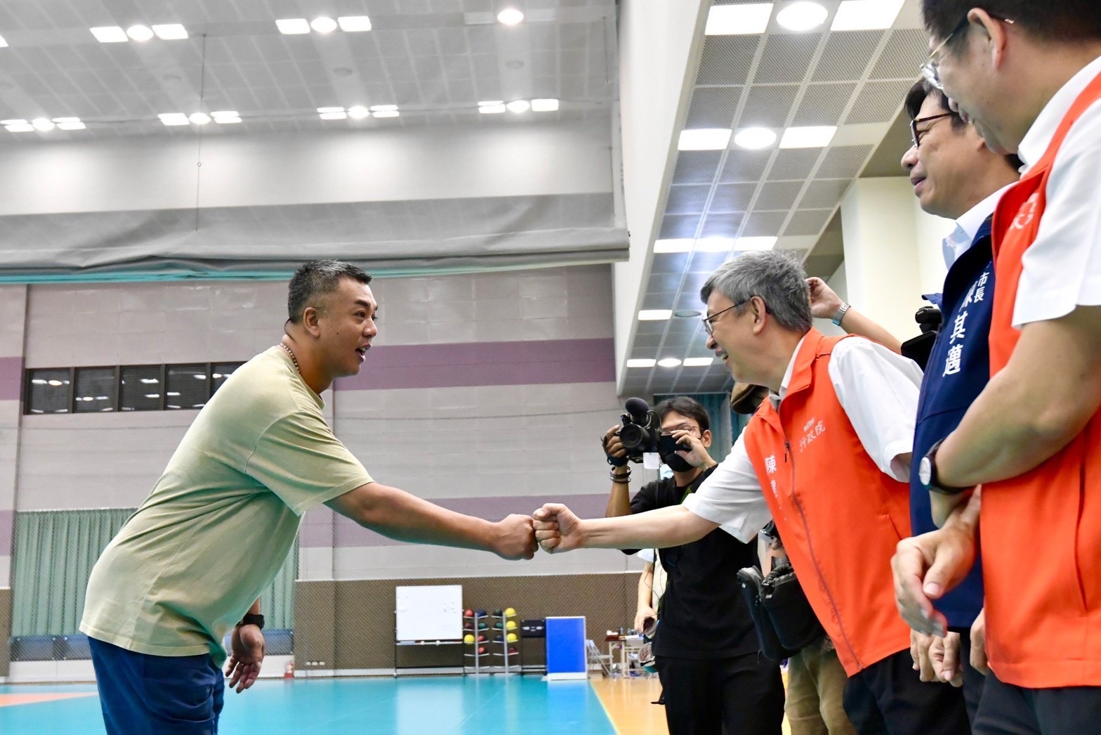 此行,陳院長首先聽取國家運動訓練中心李文彬執行長簡報「國家運動訓練中心及國家培訓隊備戰2021成都世大運、2022杭州亞運暨2024巴黎奧運情形」,並在李執行長陪同解說下,與高雄市陳其邁市長、潘文忠部長、鄭世忠署長,共同視察體操場、排球場、綜合訓練場、桌球場、舉重場、跆拳道場、柔道場等培訓場館設施;院長也關心選手培訓情形,並為現場教練及選手們加油打氣。