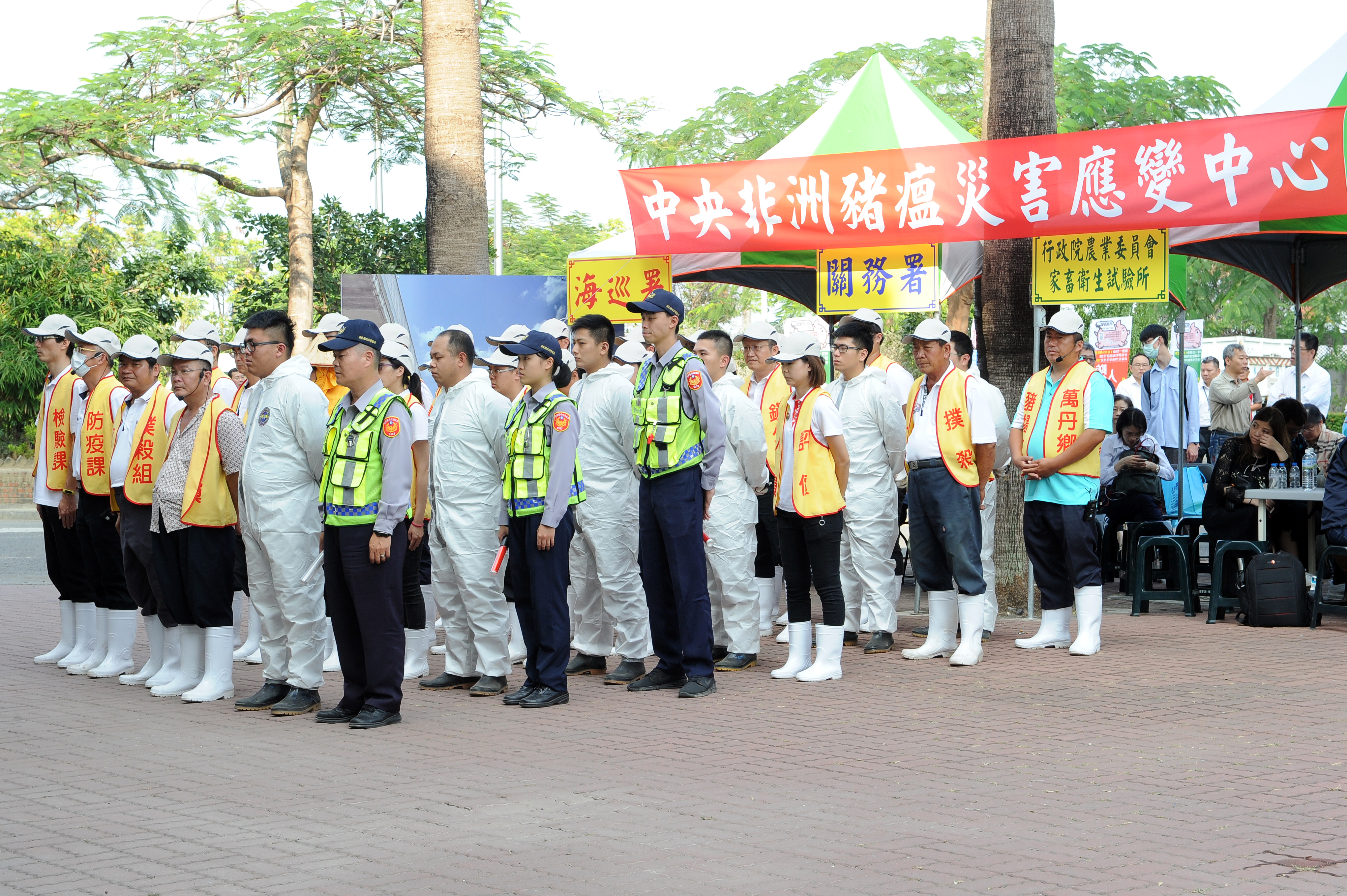 賴院長指出,為防止非洲豬瘟入境,中央政府已超前部署,在12月18日成立「非洲豬瘟中央災害應變中心」,由他擔任召集人,農委會代理主委陳吉仲擔任指揮官,一旦國內出現非洲豬瘟疫情時,縣市政府層級應變中心將立即開設,農委會已根據疫情輕重,設立分級開設標準,請各縣市政府務必通力配合。