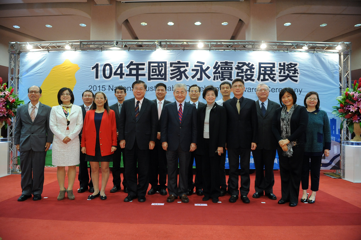 行政院長毛治國今(29)日出席「104年國家永續發展獎」頒獎典禮,表揚永續發展推動績效卓越單位。毛院長在致詞時表示,「國家永續發展獎」是行政院的重要獎項,選拔過程相當慎重,包括書面初審、實地複審及決選等3階段,尤其在實地複審階段,由永續會民間委員組成審查小組全程參與,跑遍全臺進行實地現勘與訪察。對於得獎單位的努力與卓越貢獻,以及永續會民間委員的辛勞,毛院長表達敬意與感佩。