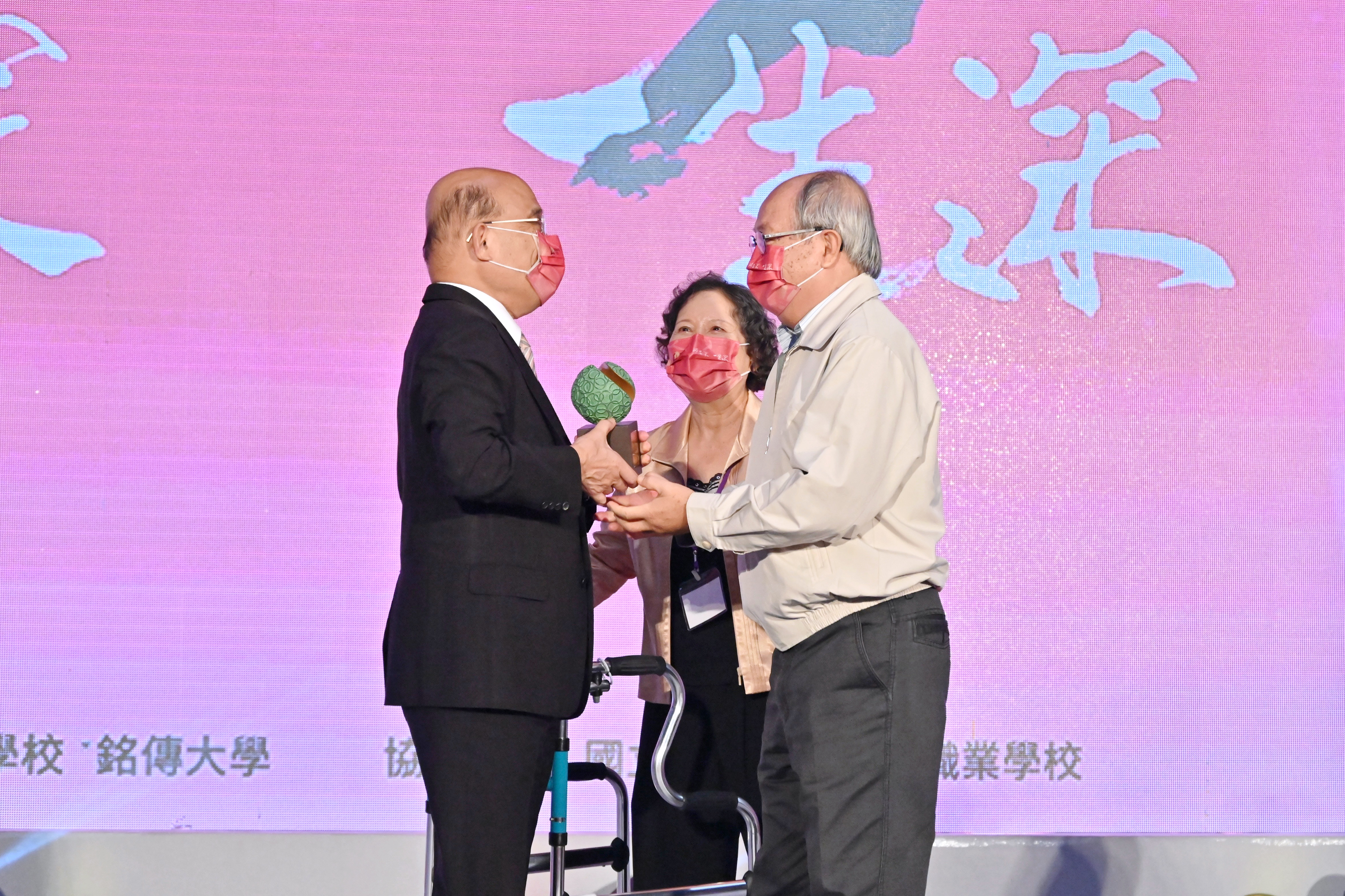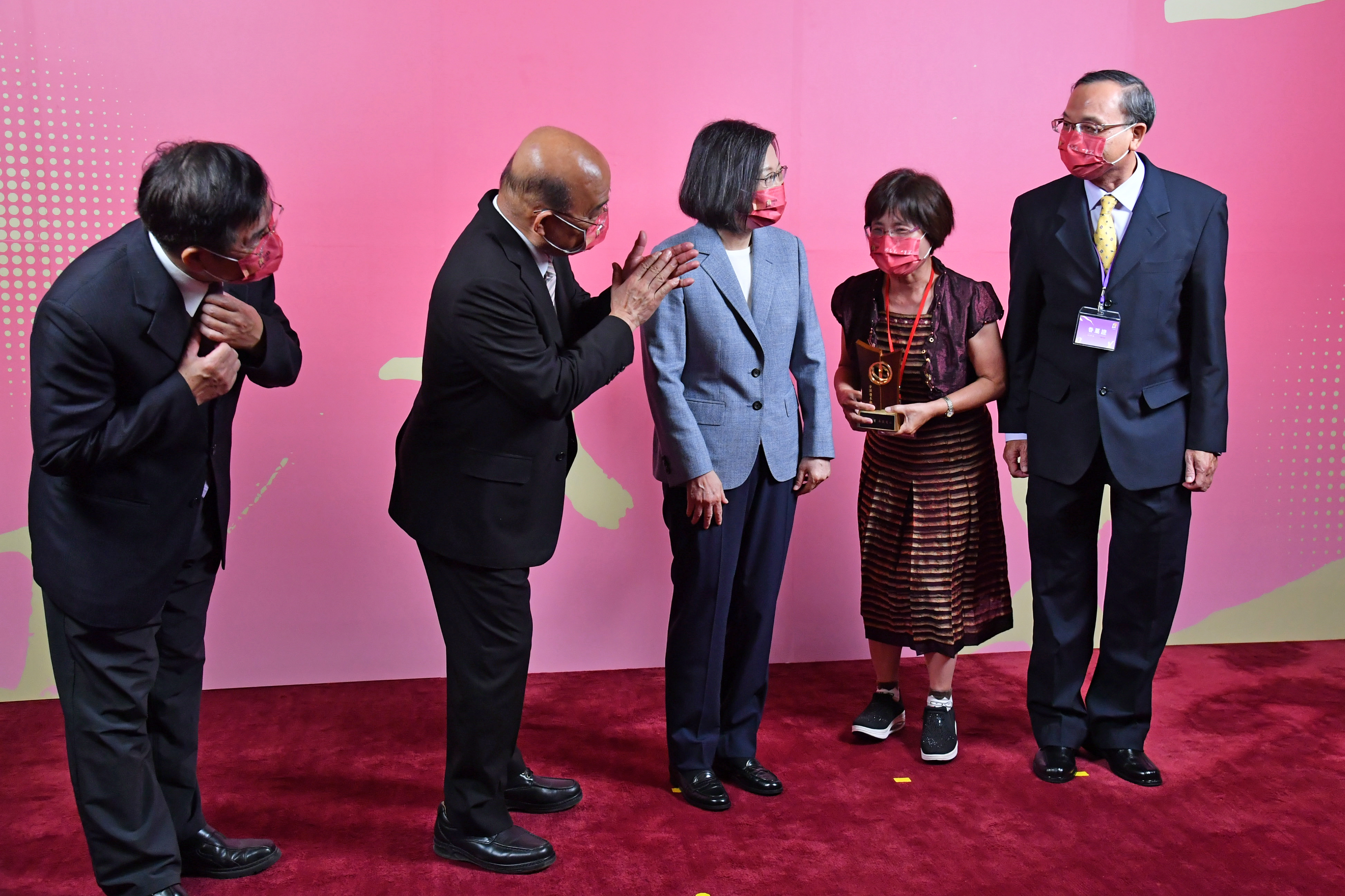 蘇院長蒞臨會場後,先欣賞木樓合唱團表演「獻聲教育、歌以載道」,並於致詞後親自頒發「教育奉獻獎」予得獎者,另由蔡英文總統及教育部潘文忠部長分別頒發「師鐸獎」及「資深優良教師獎」。最後,蔡總統、蘇院長及潘部長也與上述三獎項的得獎者及眷屬共同合影,留下珍貴畫面。