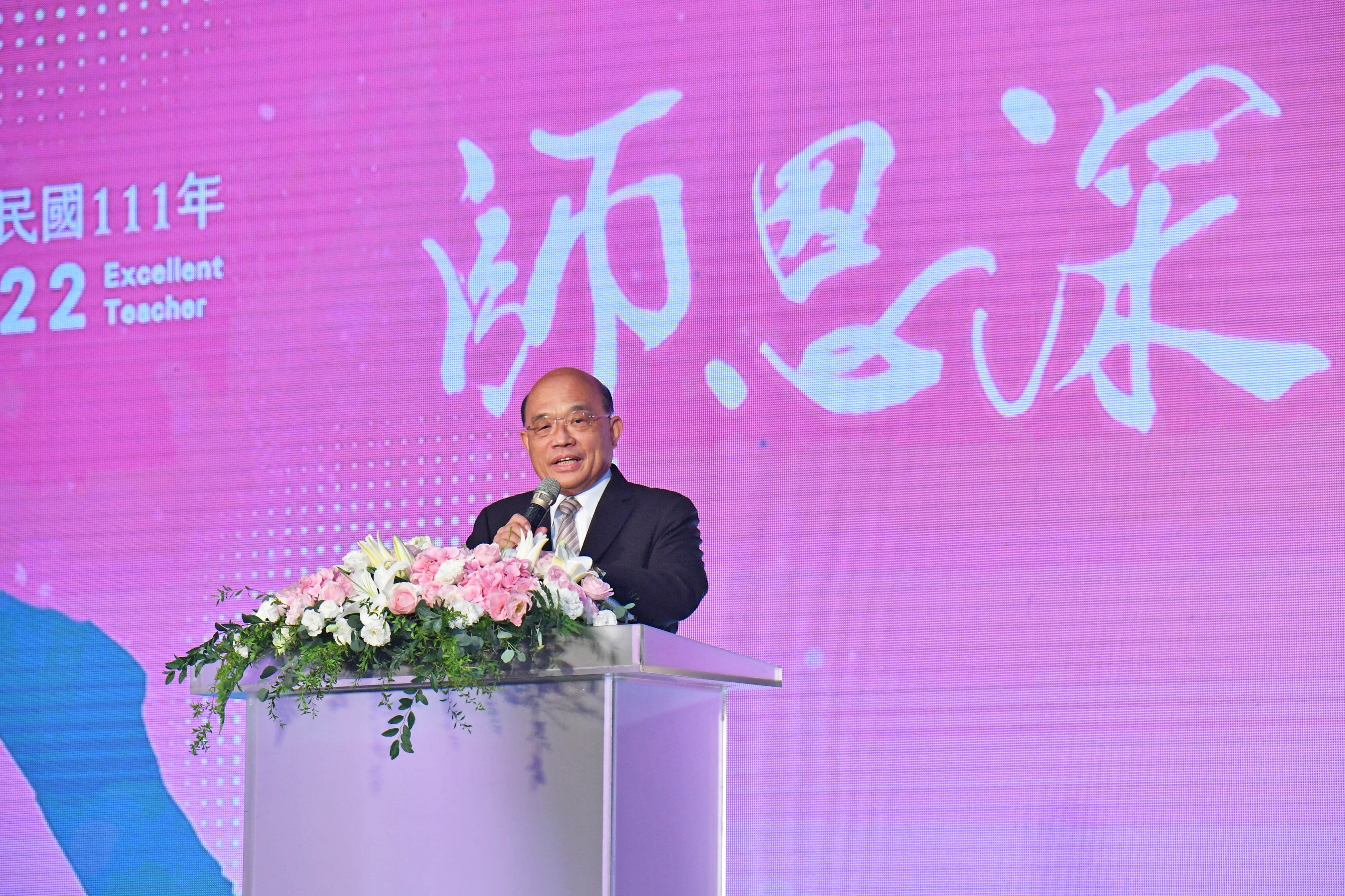 教師節將至,行政院長蘇貞昌今(26)日與蔡英文總統共同出席「111年師鐸獎、教育奉獻獎及資深優良教師表揚大會」,對作育英才、貢獻國家的全國教師致上最高的敬意和謝忱,並期勉全國教師皆能以此次獲獎教師為典範,讓臺灣代代出人才、國家有好將來。蘇院長也強調,蔡總統相當重視國內教育發展,自2016年上任後,教育經費幾乎年年成長,明(2023)年編列的教育經費更近3,500億元,而政府投入大筆預算,也實現「班班有冷氣」及「班班有網路、生生用平板」等政策目標,並由中央提高校園午餐補助至全國10元、偏鄉14元,以全面照顧偏鄉及弱勢學童。